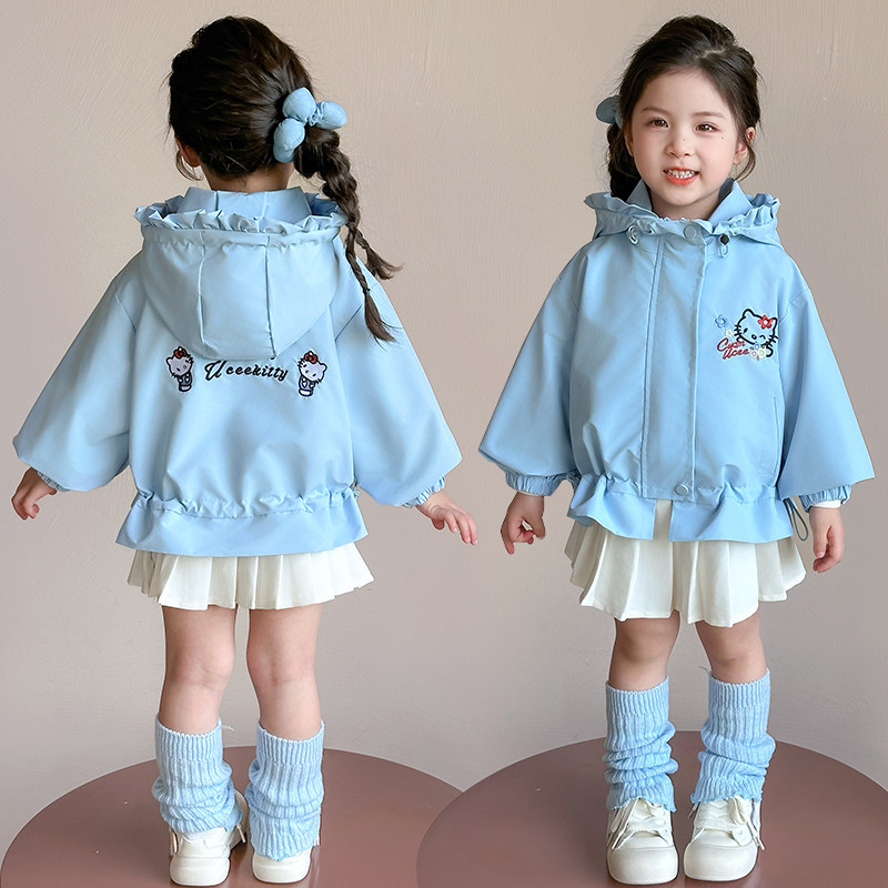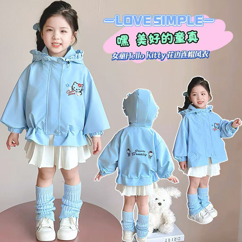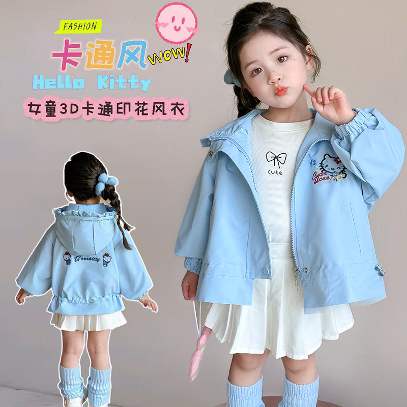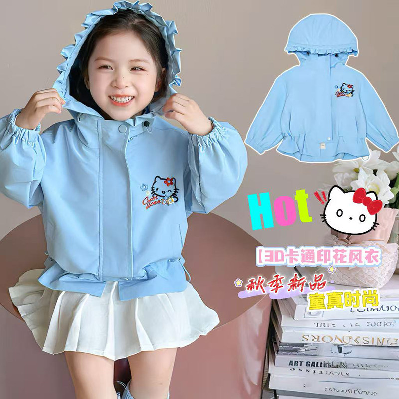 女童2026春装新款卡通猫咪连帽外套春季时髦洋气可爱风衣夹克开衫