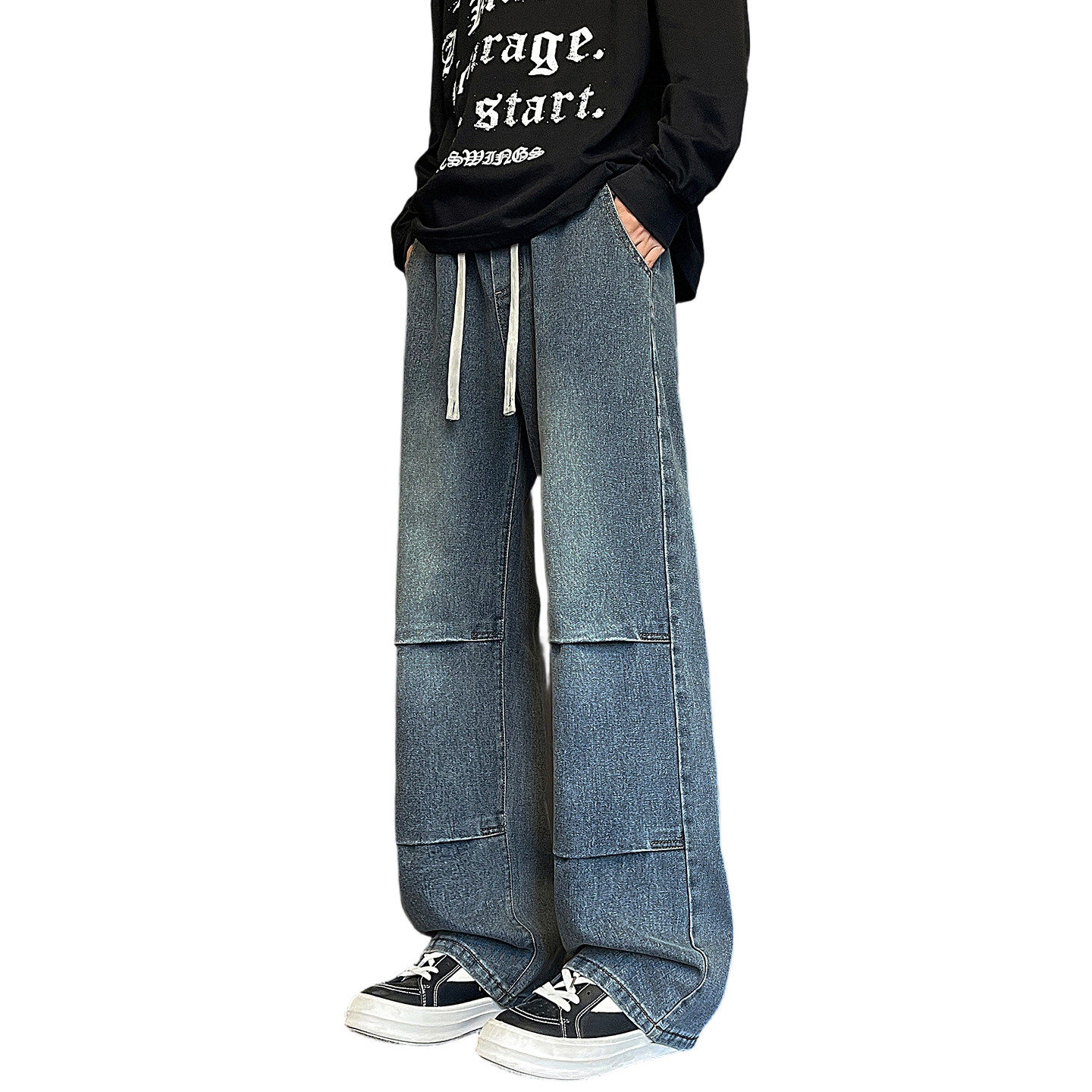春秋款牛仔裤子男生初中高中学生潮流帅气青少年阔腿直筒长裤男装