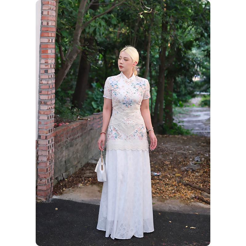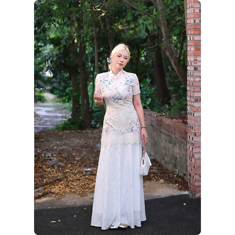 糯米子[满芳庭]新中式改良旗袍女夏2026新款大码碎花收腰连衣裙子