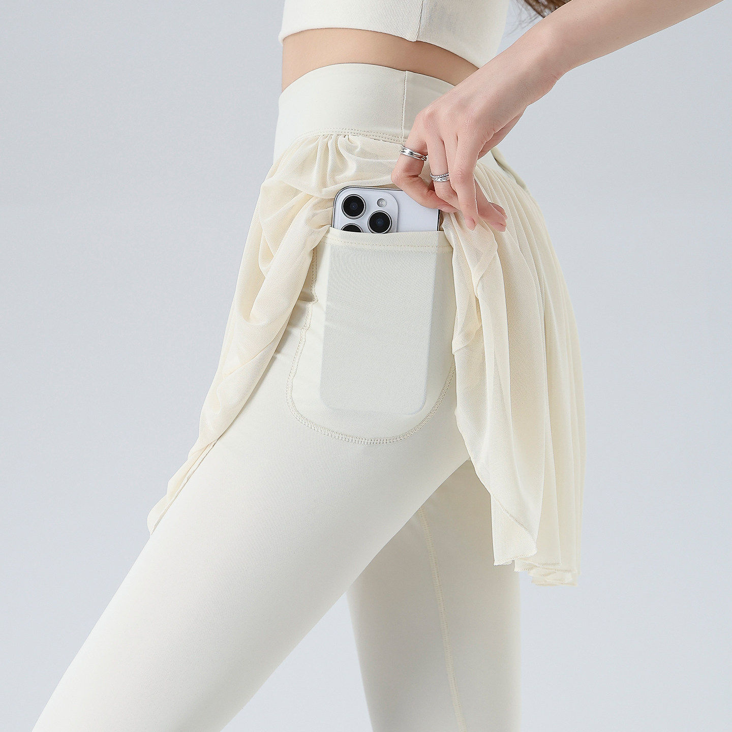 假两件瑜伽裤女外穿夏季健身裤跑步打网球高腰提臀口袋遮挡裙裤