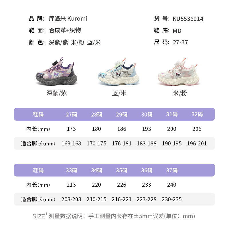 库洛米儿童运动鞋女童鞋子2026旋转纽扣老爹鞋中大童春款跑步鞋