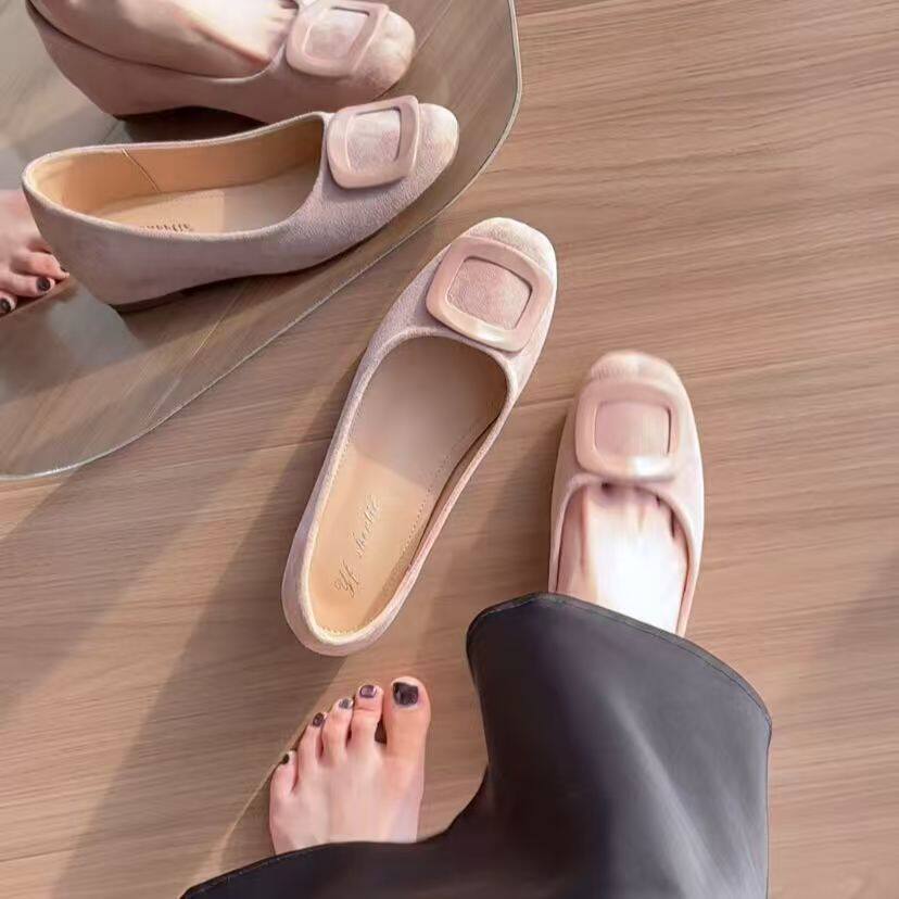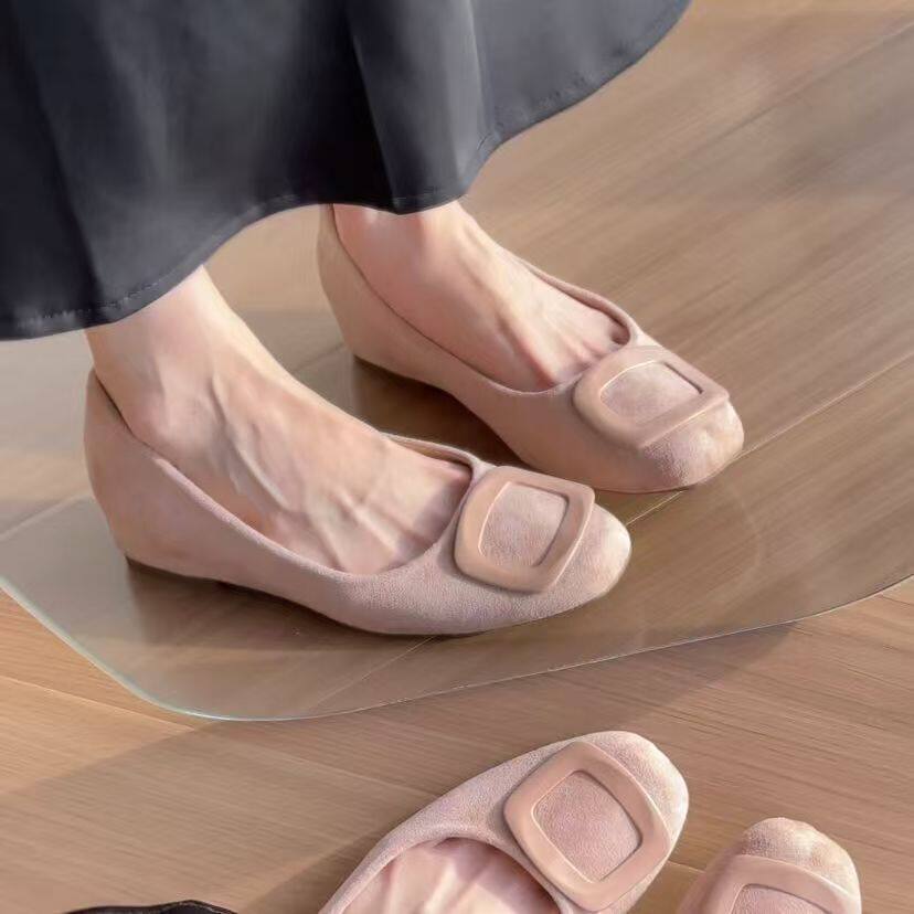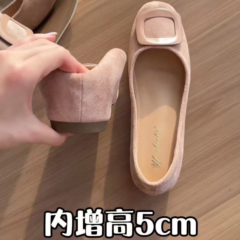 真皮内增高方扣浅口单鞋女2026年春季新款法式百搭玛丽珍鞋不累脚