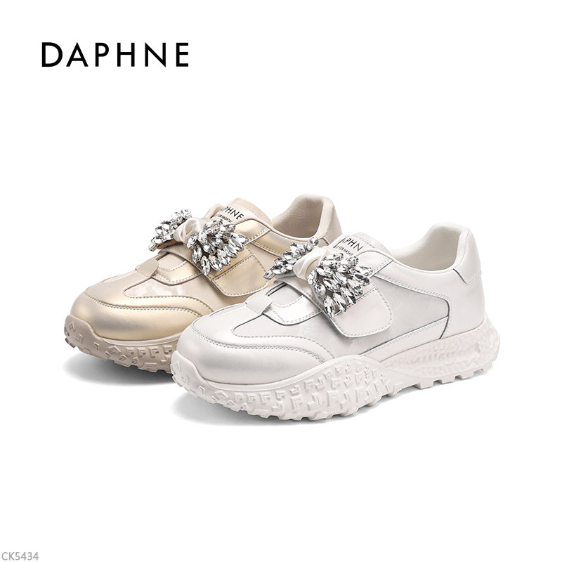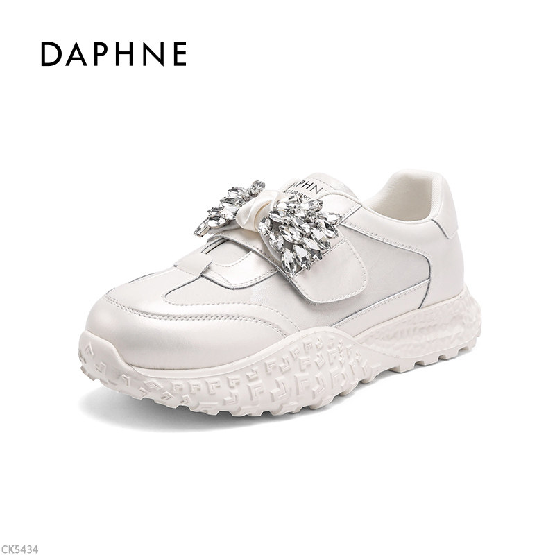 Daphne/达芙妮女鞋厚底德训鞋女水钻装饰休闲运动鞋增高百搭板鞋