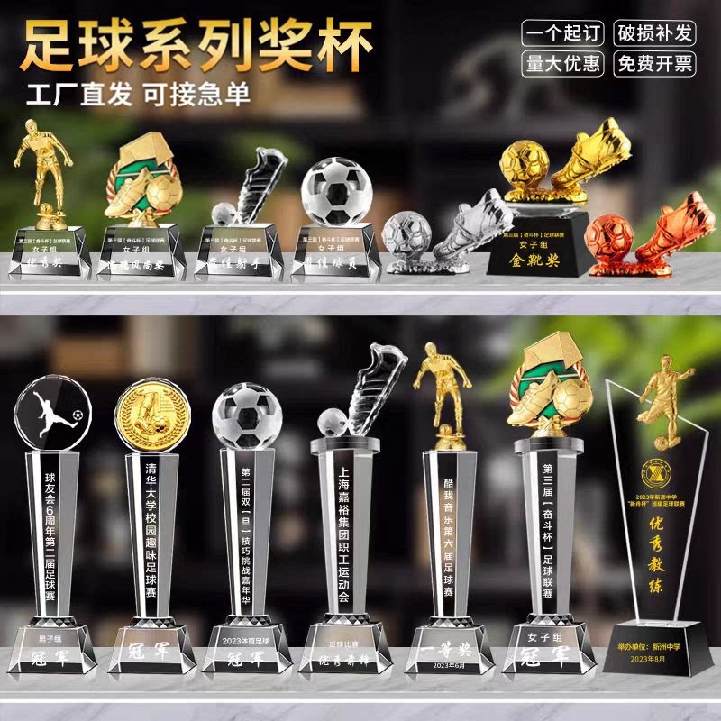 311线报网描述:足球水晶奖杯定制金靴奖金奖足球先生射手奖