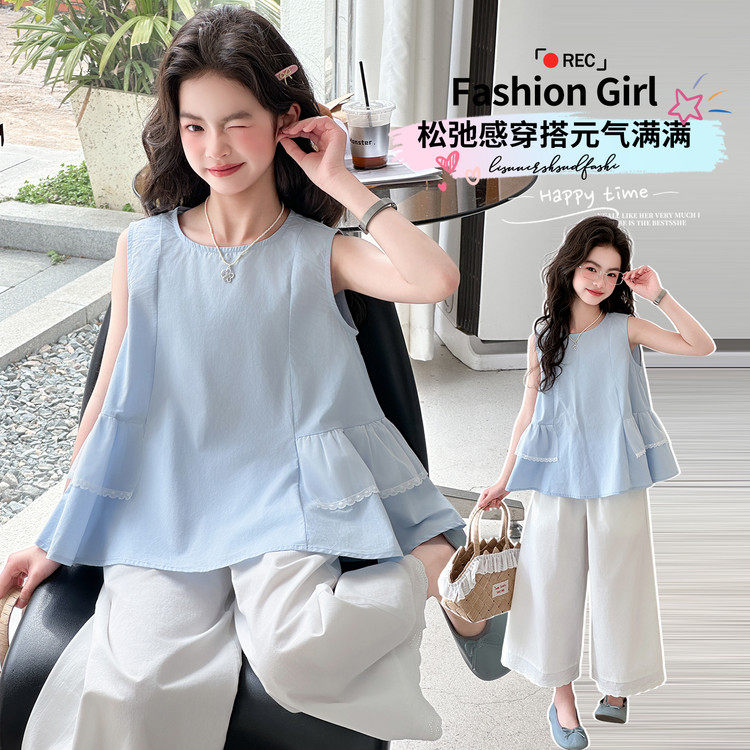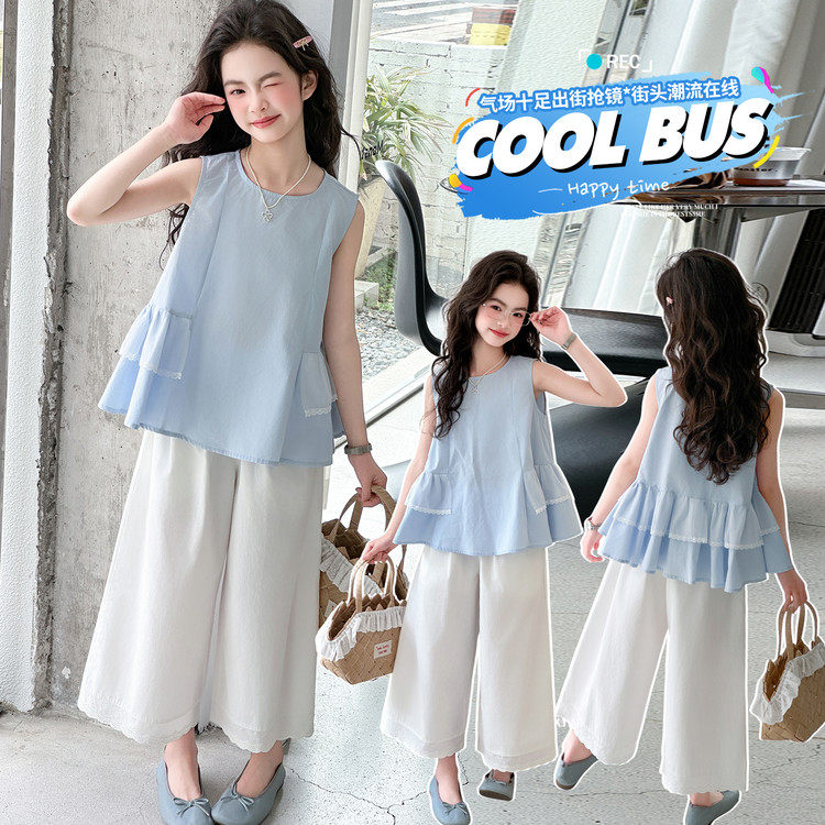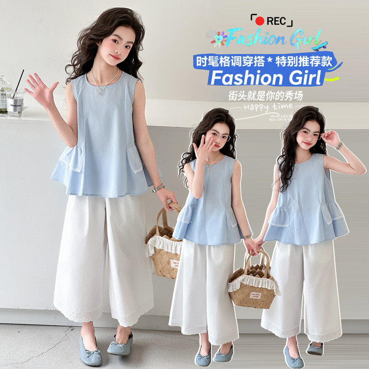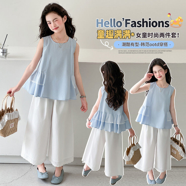 韩版女童夏装无袖上衣阔腿裤套装中大童休闲两件套夏日清凉风薄款