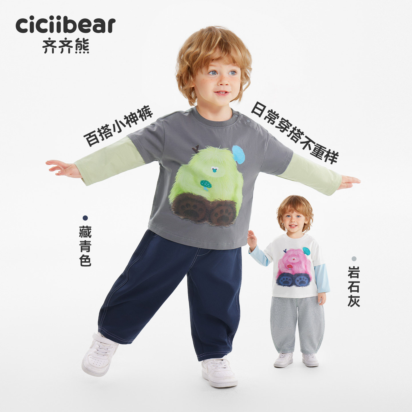 【秀场同款】齐齐熊男童裤子春装新款宝宝卫裤儿童装宽松直筒