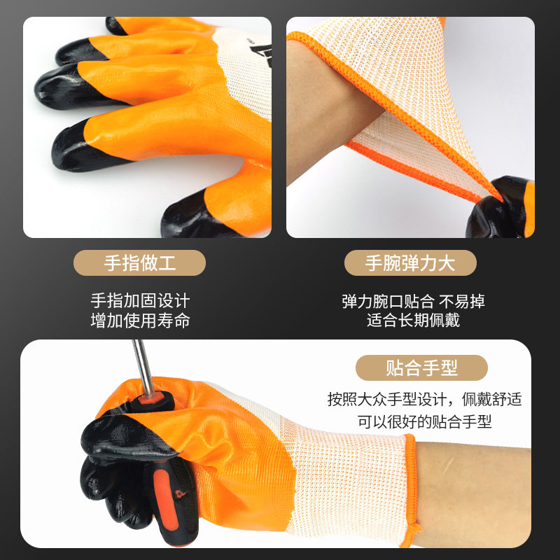 包邮左右手660丁腈浸胶耐磨王防滑劳保防割建筑工地防油工业手套