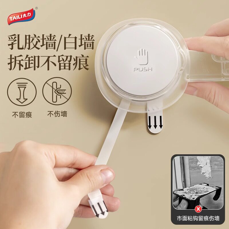 太力乳胶漆墙面免打孔挂钩无痕粘钩白墙墙纸专用门后强力粘胶承重