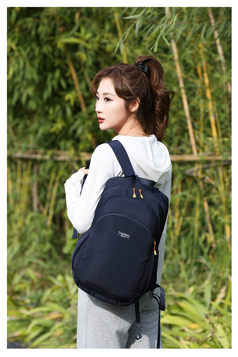 新款可折叠收纳双肩背包女旅行简约休闲轻便户外双肩背包