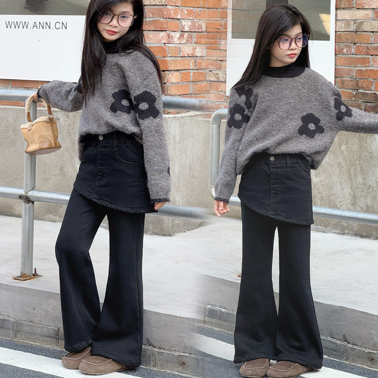 女童裤子牛仔裤2026春秋新款中大童洋气喇叭裤春季小女孩韩版长裤
