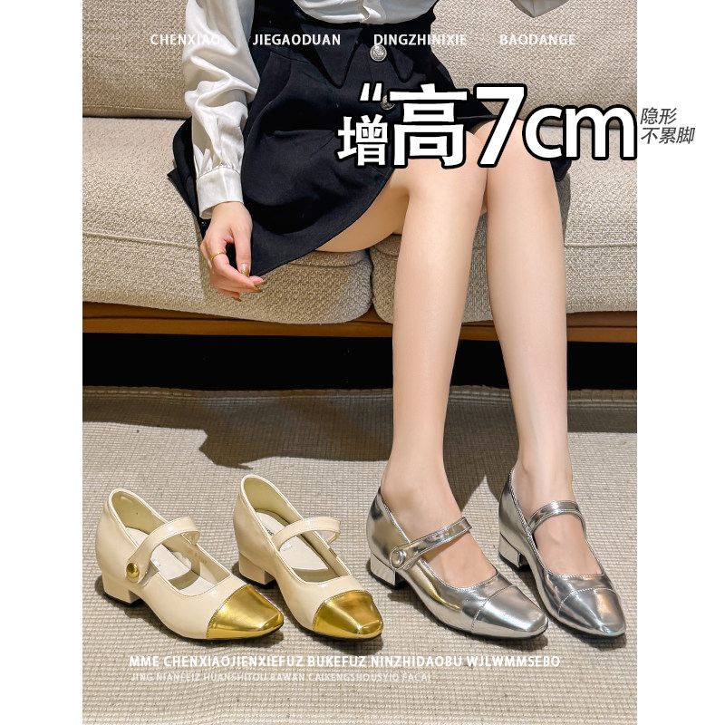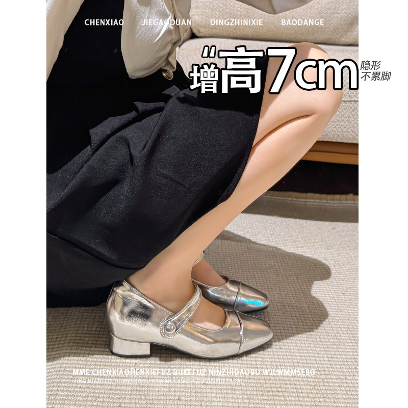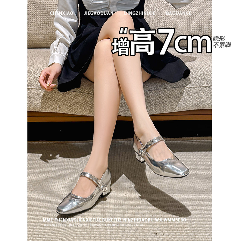 不累脚!隐形内增高7CM小个子2026春夏季法式粗跟高跟玛丽珍单鞋