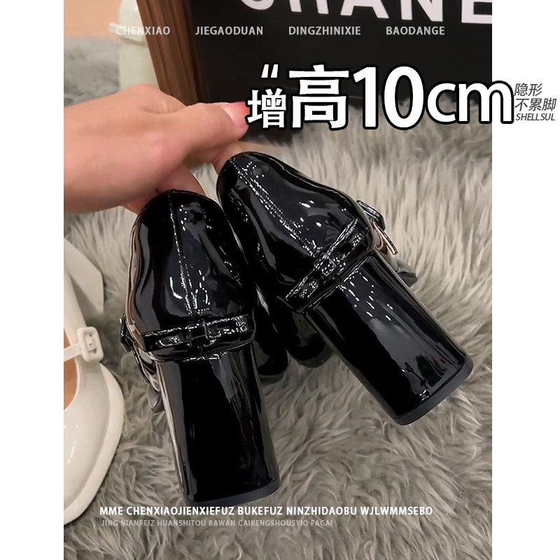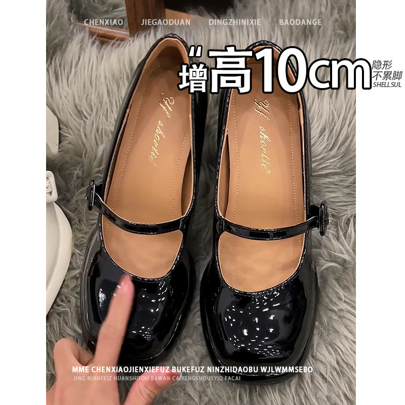 不累脚!隐形内增高10CM防水台浅口2026春夏粗跟方头玛丽珍单鞋女