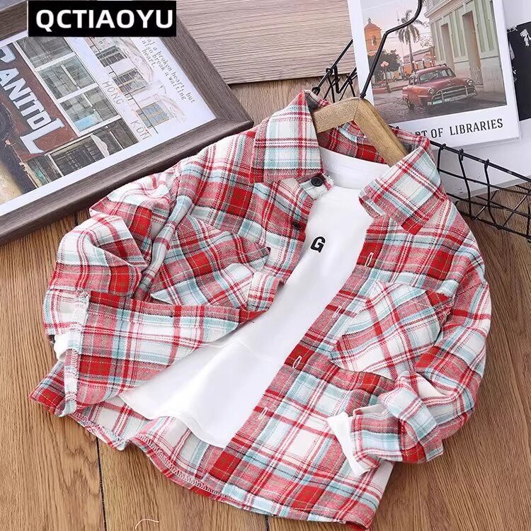 女童格子衬衫春秋季上衣2026新款纯棉寸衣外套大儿童春装长袖衬衣