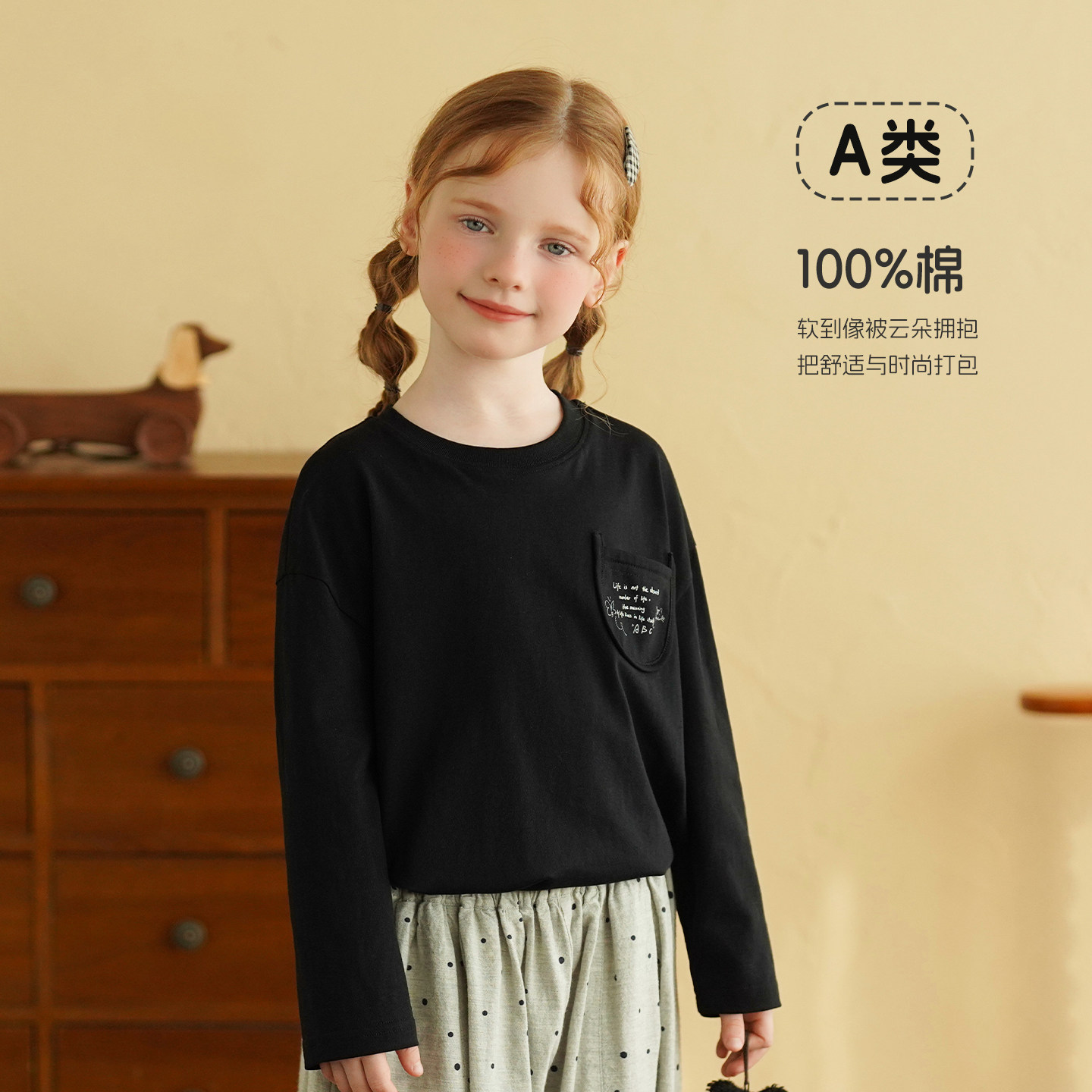 砚台家女童长袖T恤2026春季新款儿童薄款洋气百搭休闲纯棉上衣潮