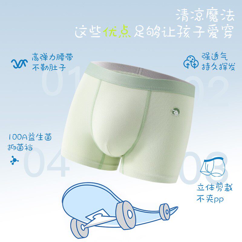 纯棉A类100A益生菌男童青少年内裤抑菌青春发育期四角平角裤
