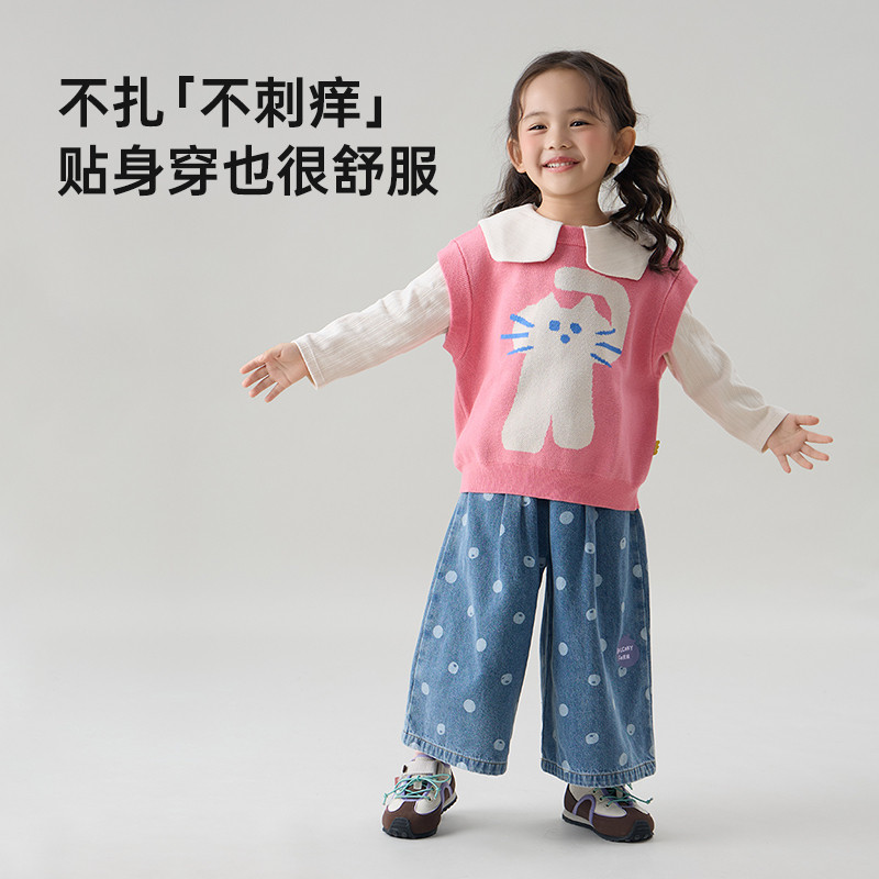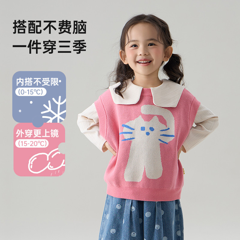【新品】papa爬爬儿童毛衣马甲背心男女童卡通宽松叠穿针织衫上衣