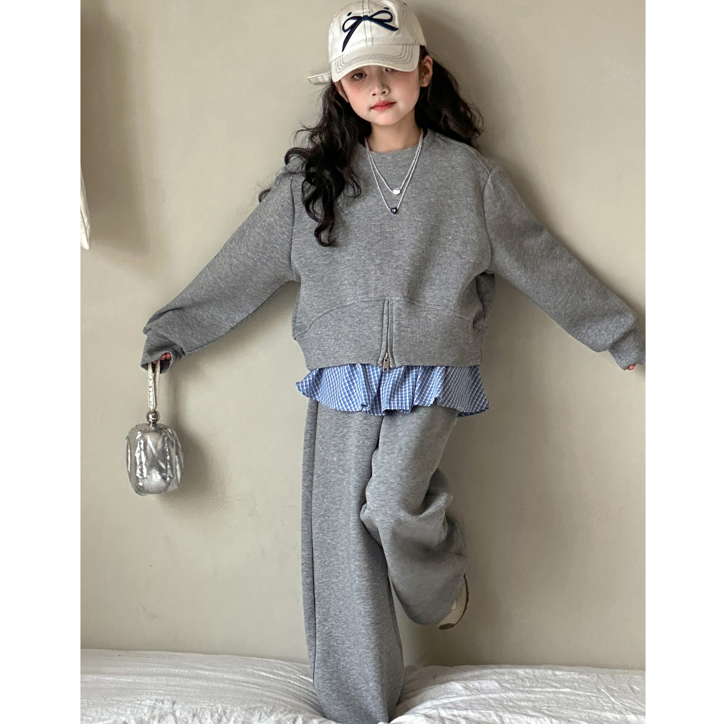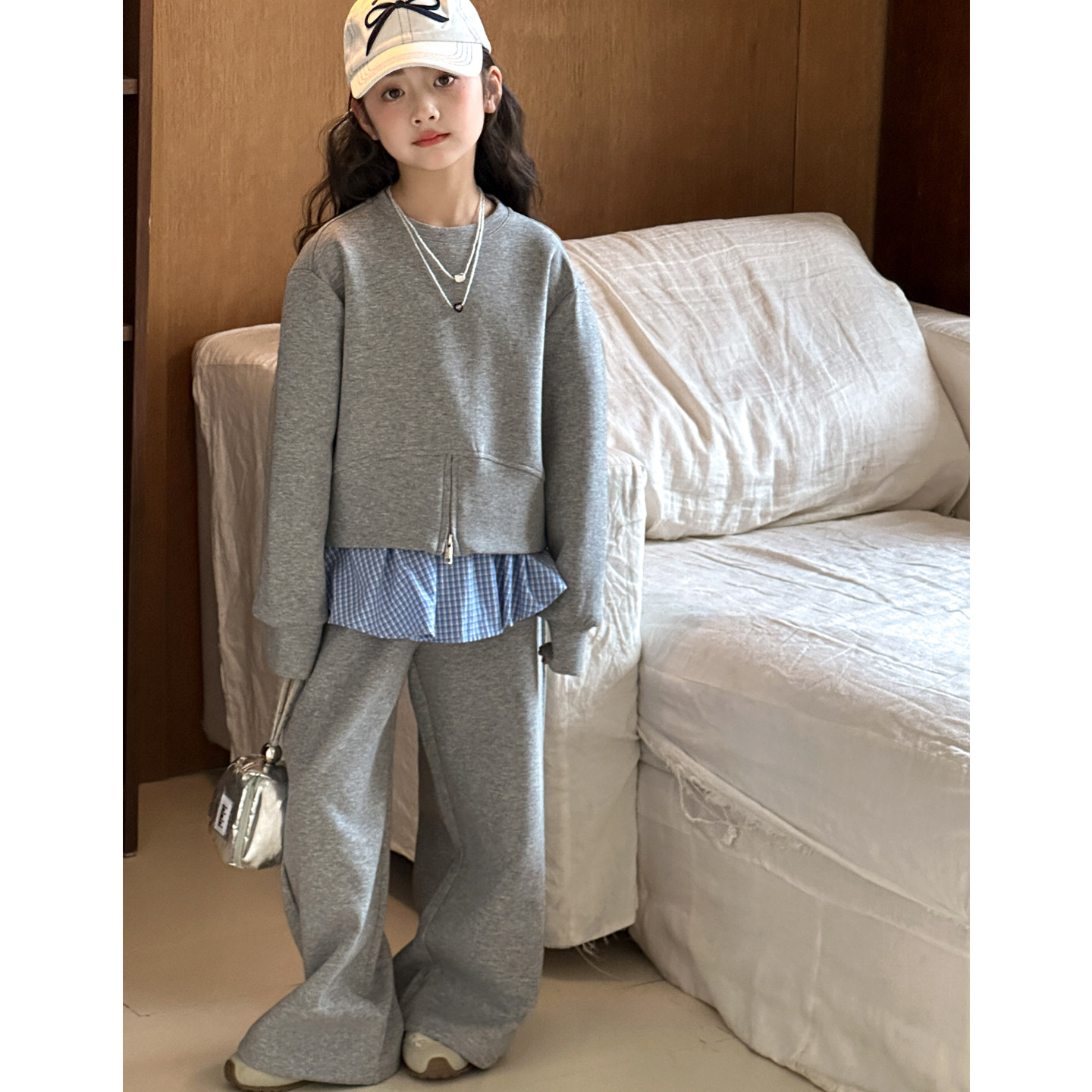 女童套装春装2026新款女大童装假两件裤子初中生春秋款卫衣两件套