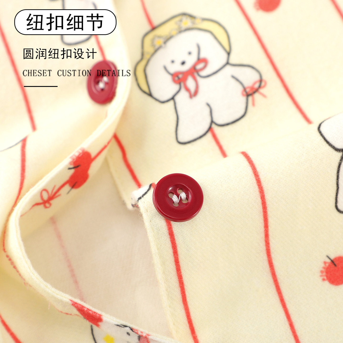 卡通条纹纯棉纱布睡衣女款春秋季长袖可外穿学生婴儿棉家居服套装