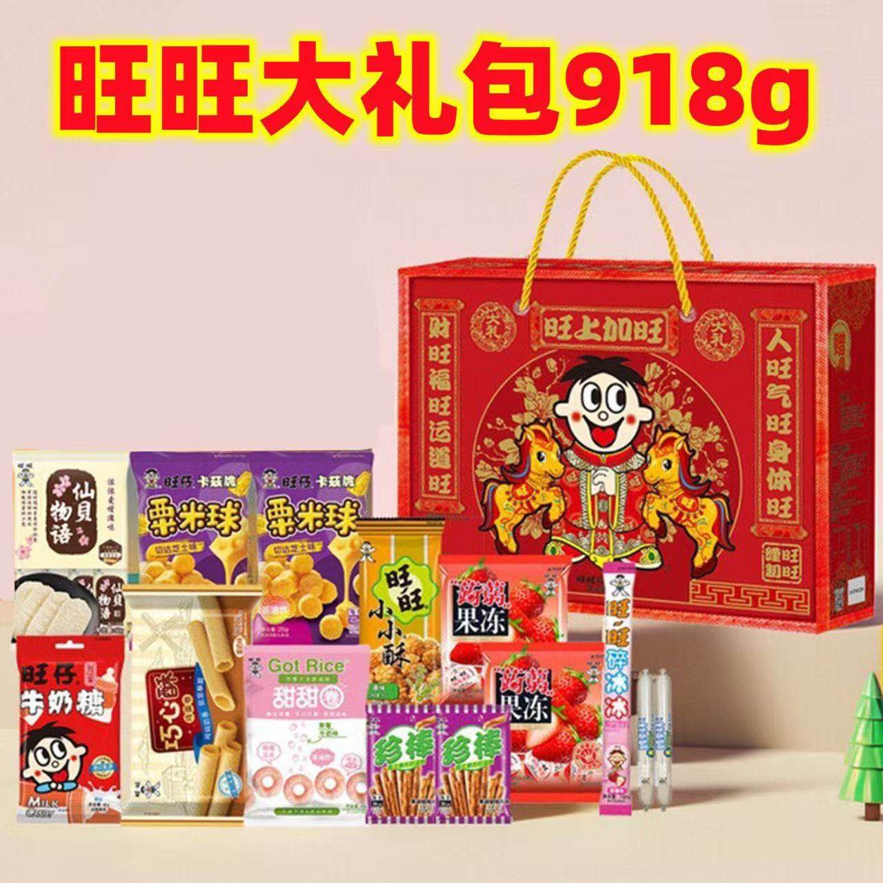 马年旺旺大礼包918g雪饼仙贝零食年货礼盒春节置办新年送礼组合装