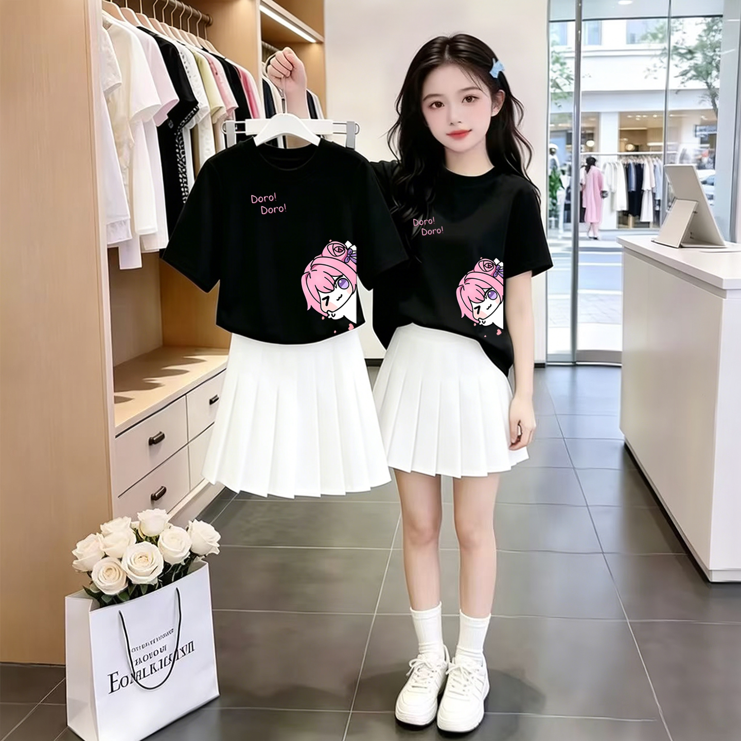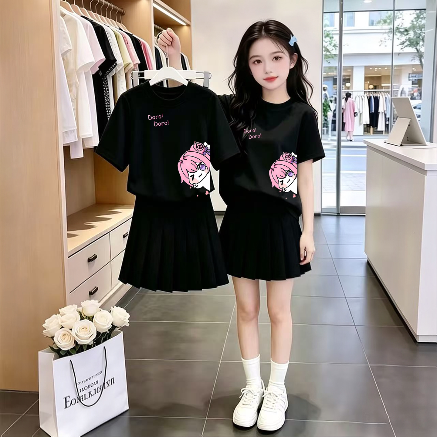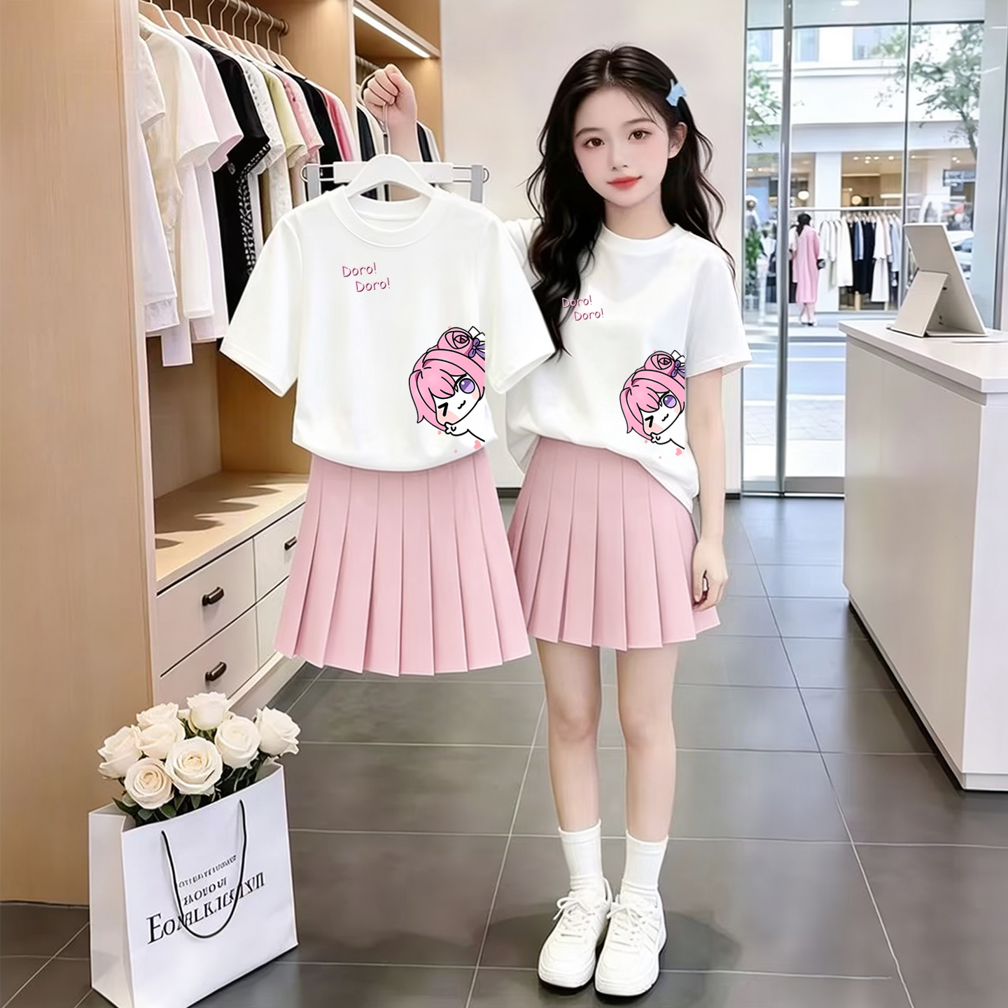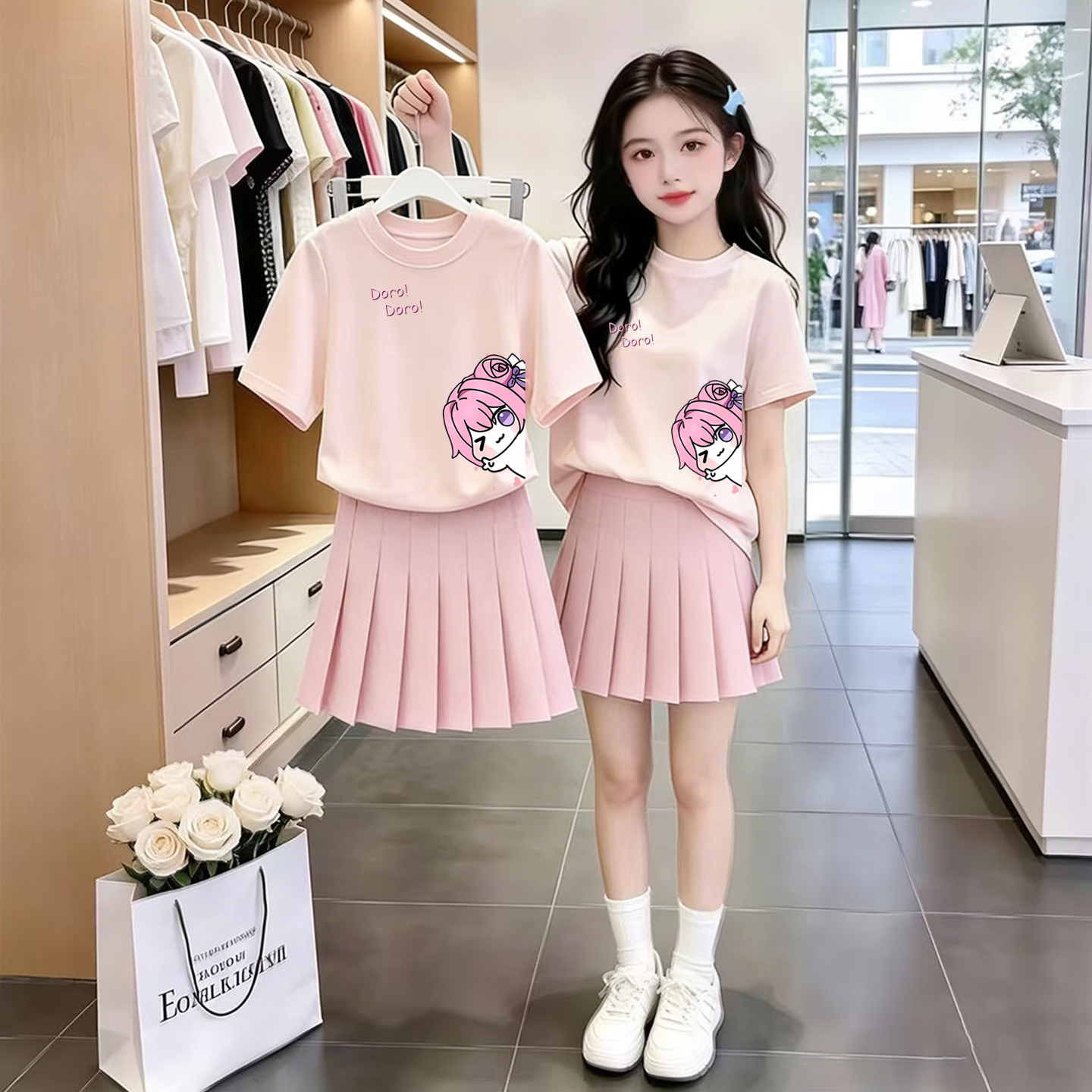 初中生夏装运动套装2026新款女大童时尚休闲短袖T恤学生百褶裙子