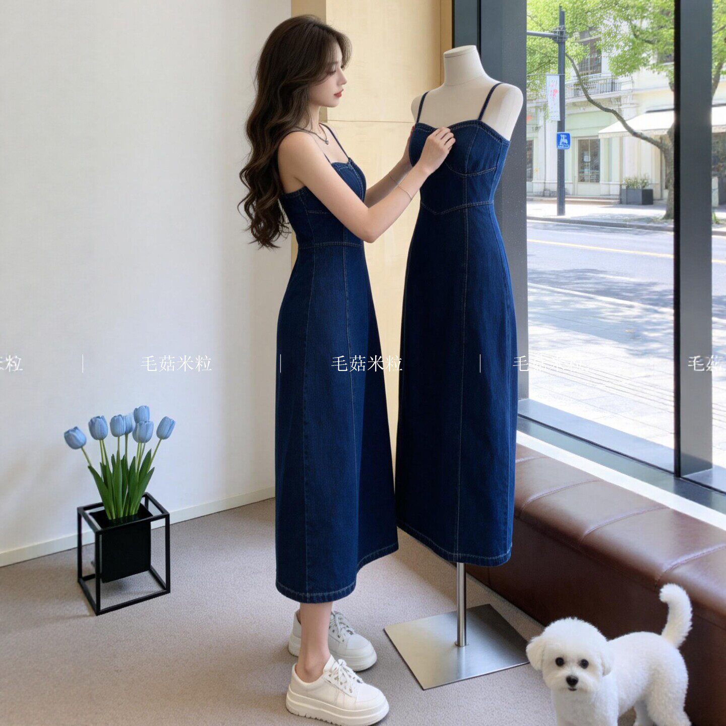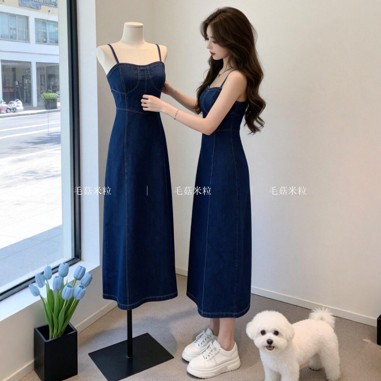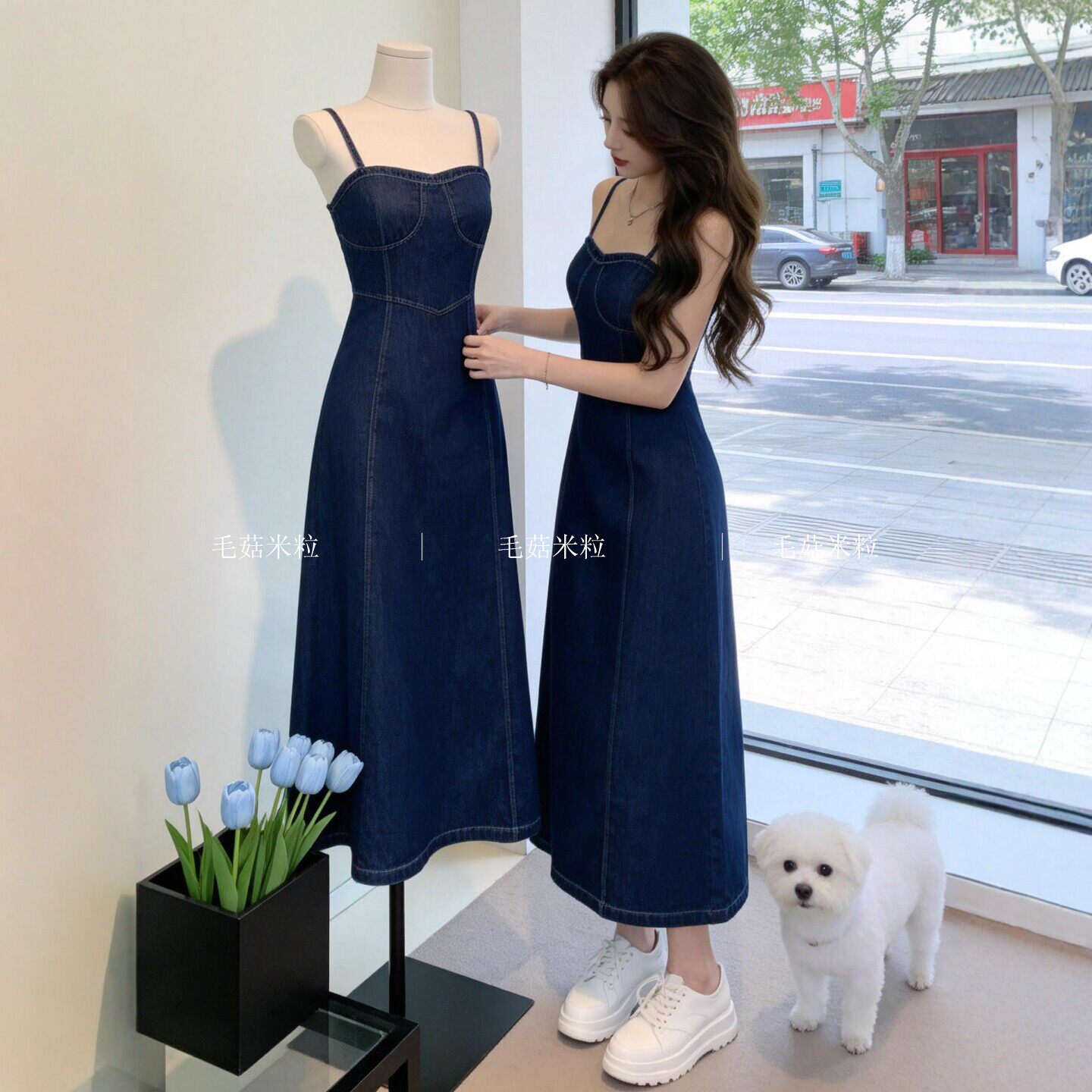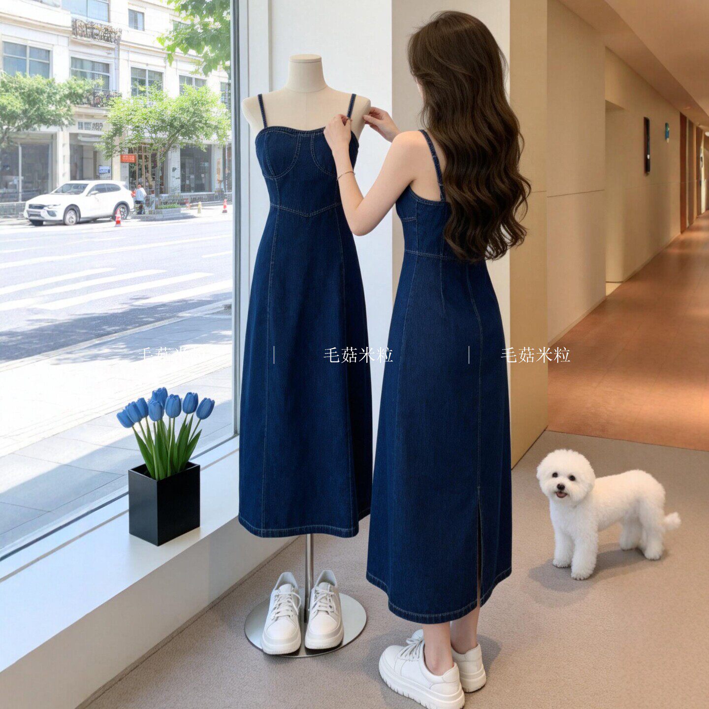 牛仔吊带连衣裙女夏轻奢高级感酒午法式复古收腰显瘦开叉无袖长裙