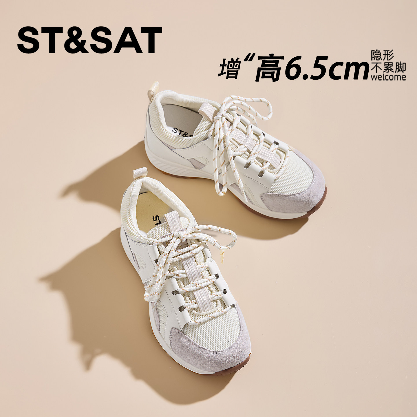 星期六6.5CM内增高阿甘鞋女网面透气厚底小个子女鞋百搭德训鞋