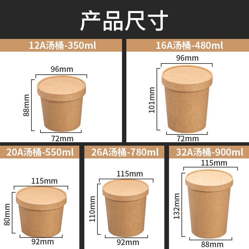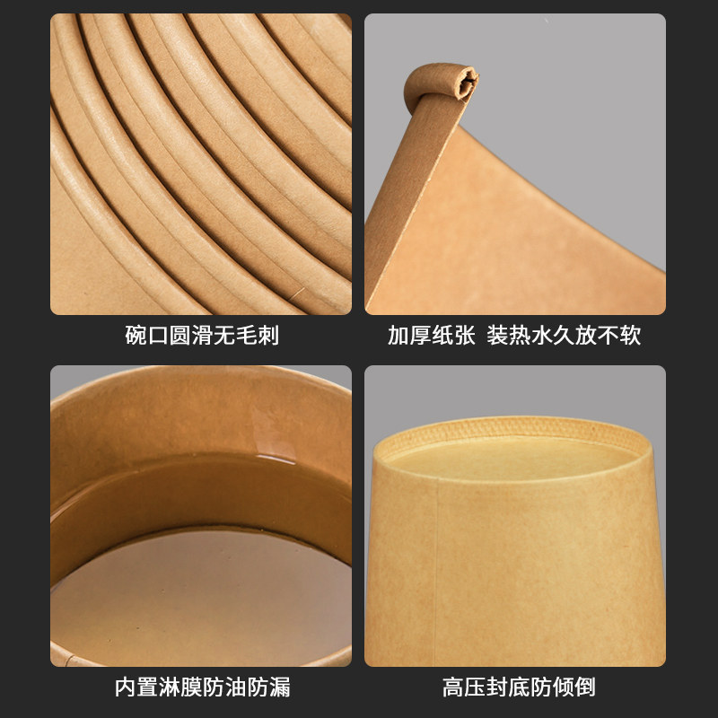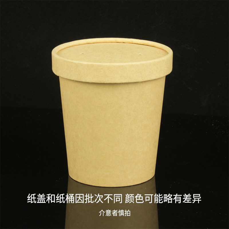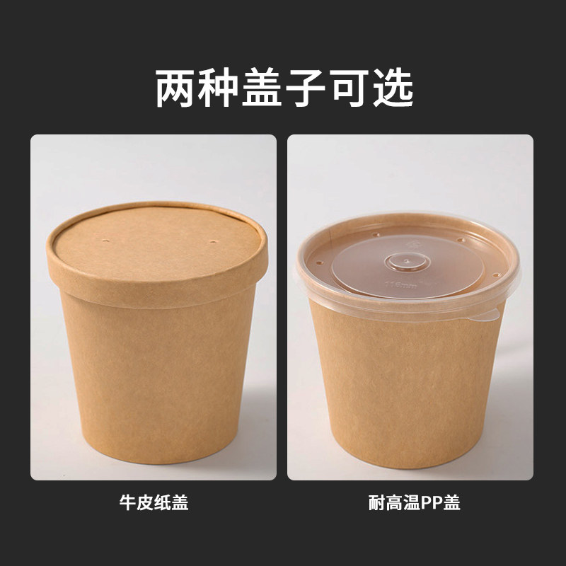 一次性牛皮纸碗打包盒圆形带盖外卖餐盒商用汤桶汤杯汤碗装粥杯子