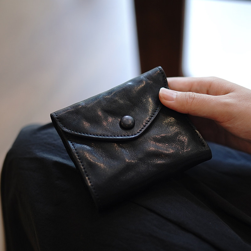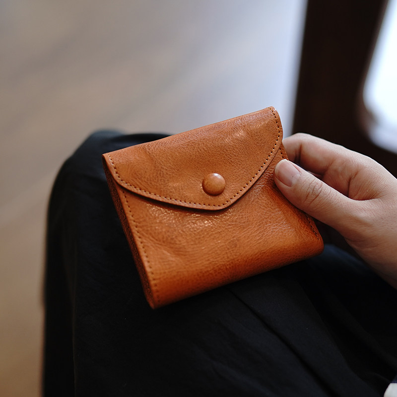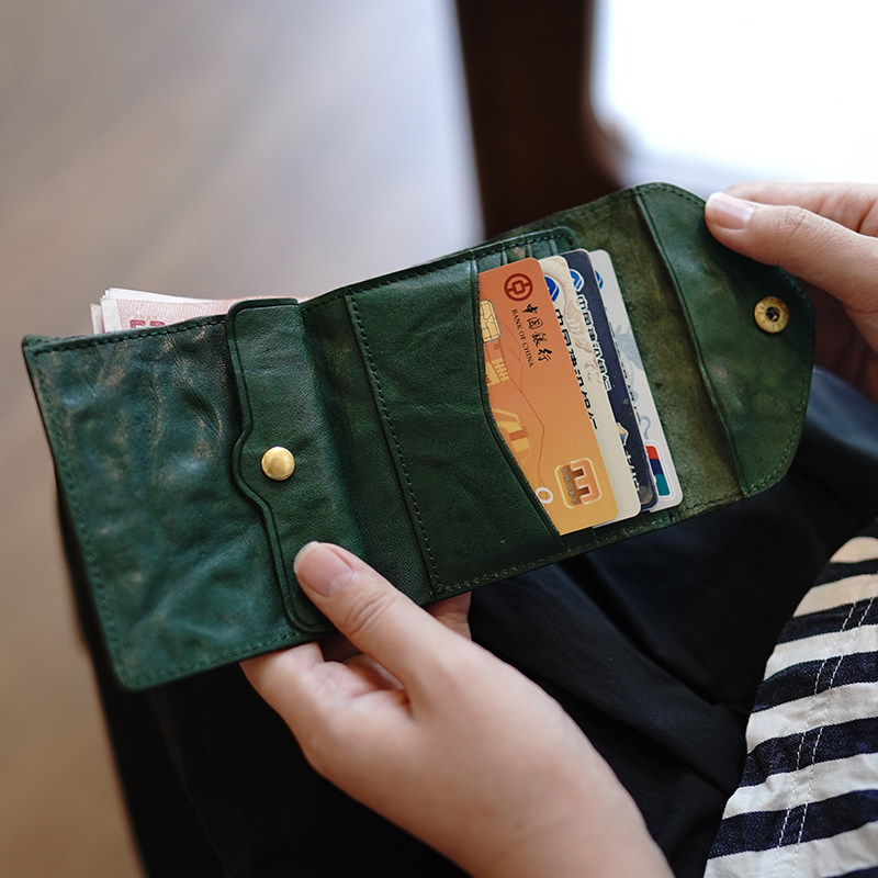 鹿小姐植鞣牛皮褶皱文艺复古多卡位简约实用小巧真皮短款钱包皮夹
