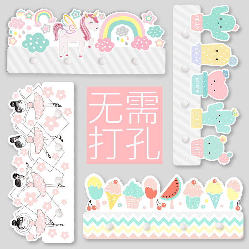 创意免打孔儿童房卡通壁挂粘y钩门后玄关卫生间墙壁墙面装饰挂钩