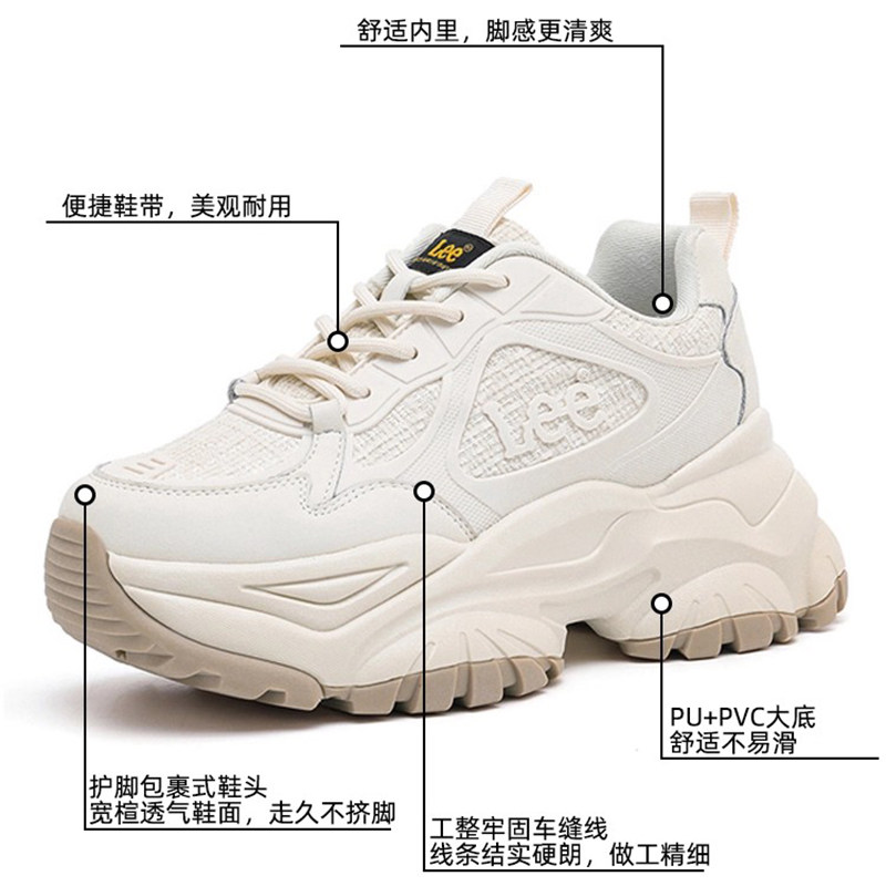 Lee女鞋2026新款春季休闲百搭运动鞋巨好看的厚底增高白色老爹鞋