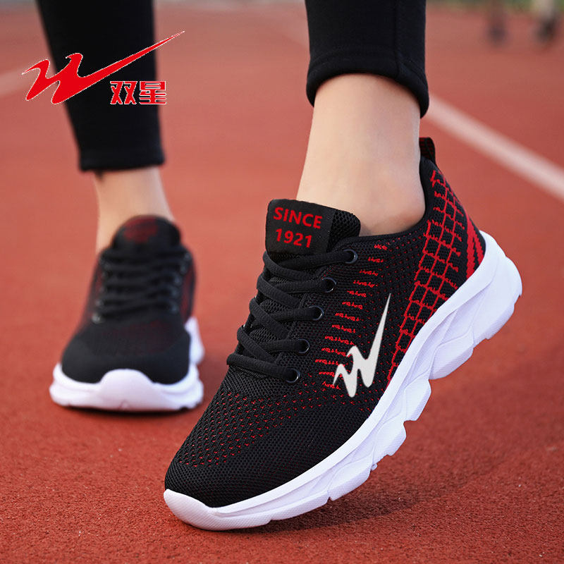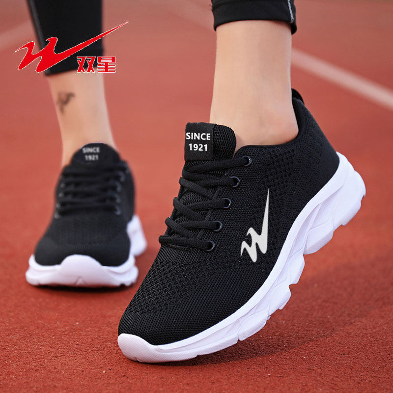 双星运动鞋女鞋春秋网面透气百搭休闲妈妈旅游鞋女轻便软底跑步鞋