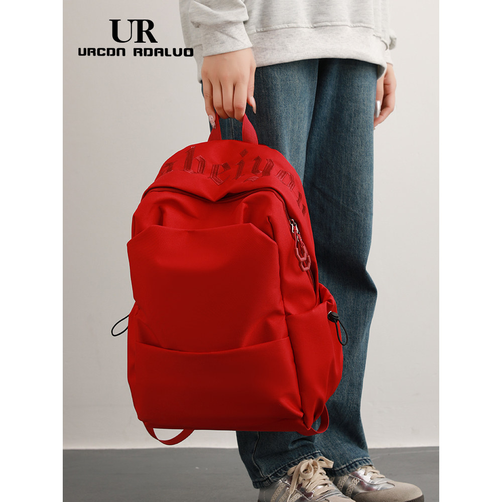 UR简约纯色初高中学生书包女2025新款男大容量双肩包短途旅行背包