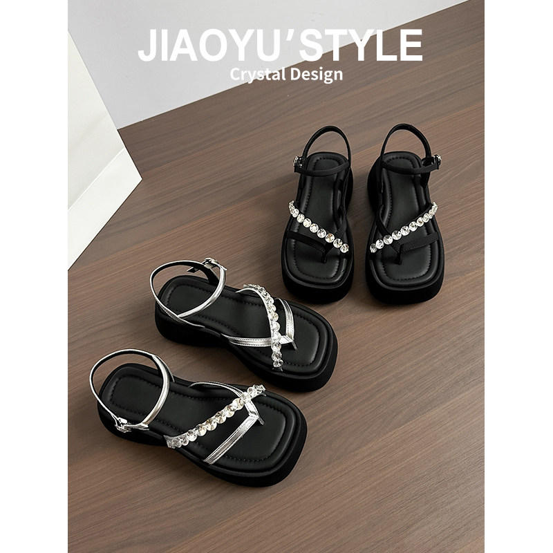 真皮~骄屿 厚底凉鞋女款夏季百搭不累脚超火绝美配裙子软底罗马鞋