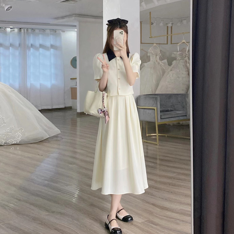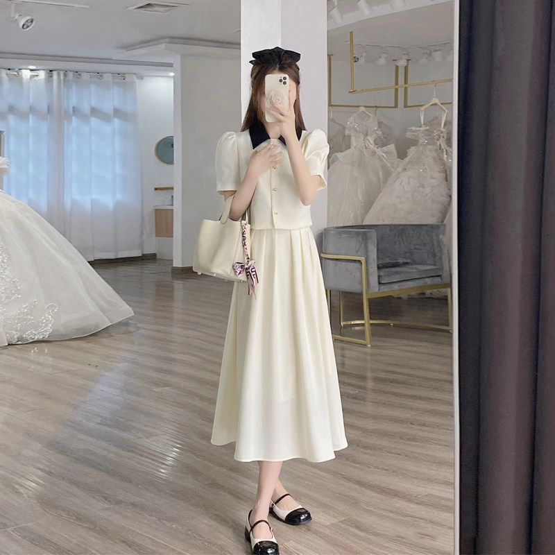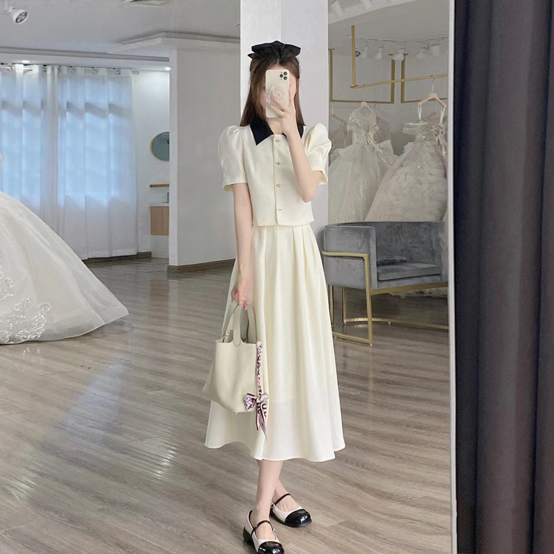 小个子轻熟风连衣裙女夏季2023新款高级感白色小香风套装裙两件套