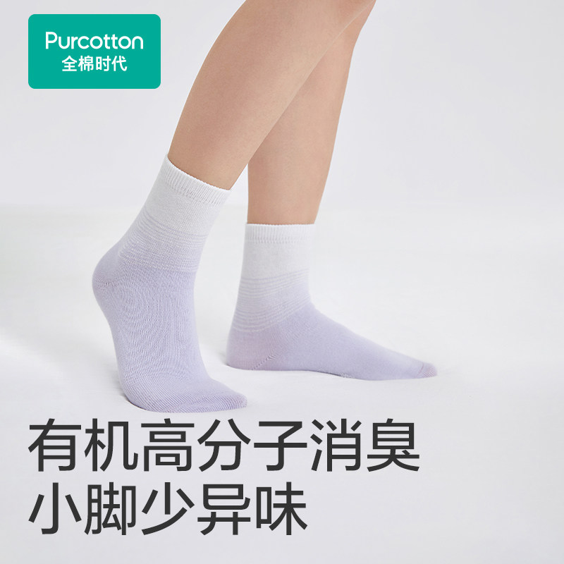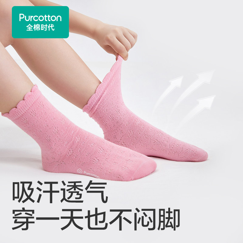 全棉时代儿童纯棉袜子夏季新款5A抗菌中筒袜男女童袜子 3双装