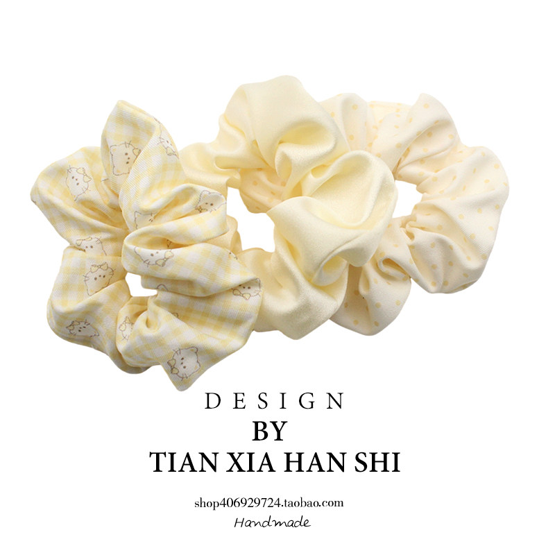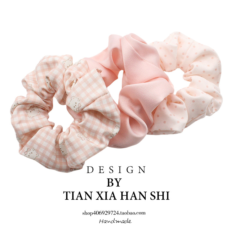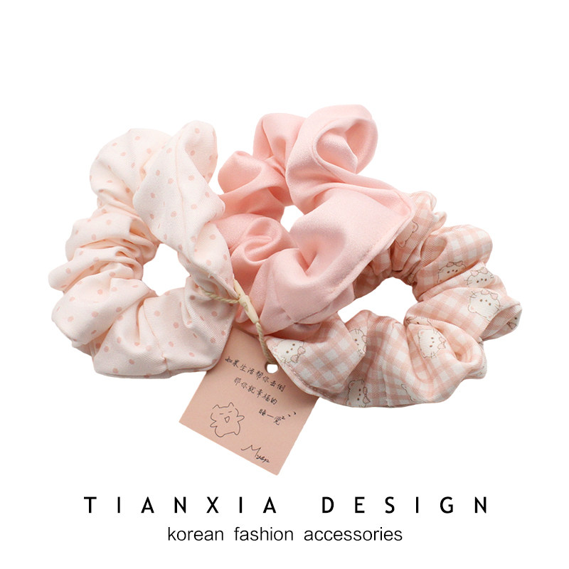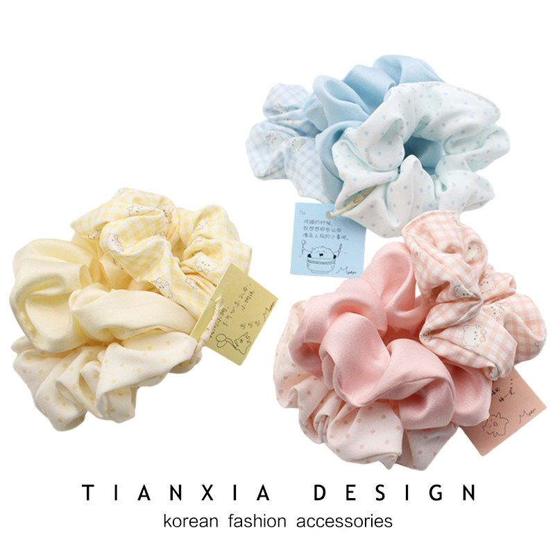 韩国 ins儿童拼色大肠发圈可爱卡通布艺发绳女童波点套装发圈头饰