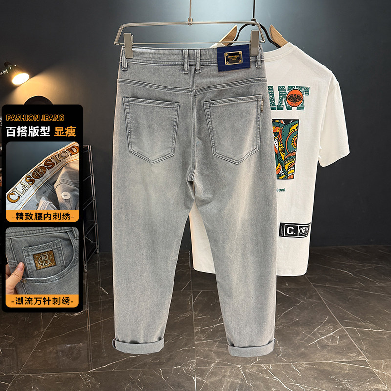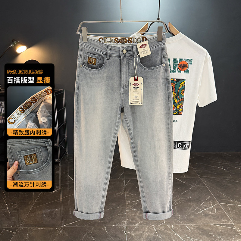 牛仔裤男款2026年夏季新款韩版小直筒男裤休闲百搭高弹力长裤605