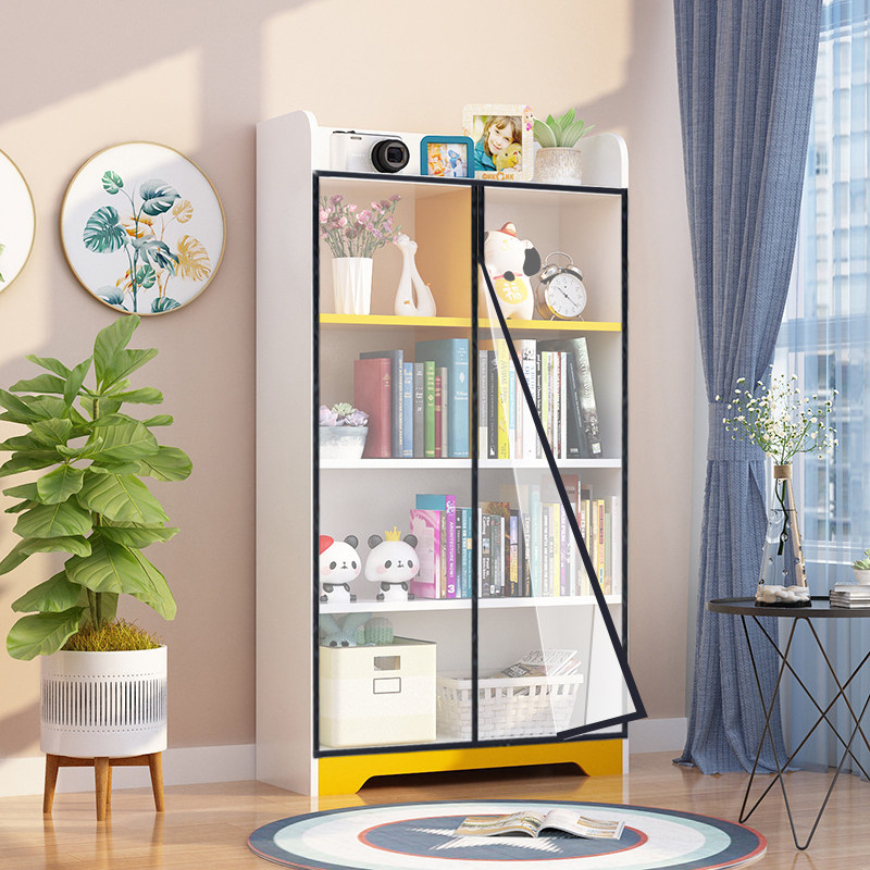 开放式书柜挡灰帘遮挡帘厨房魔术贴柜子手办透明书架防尘帘磁吸