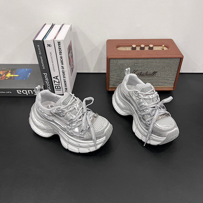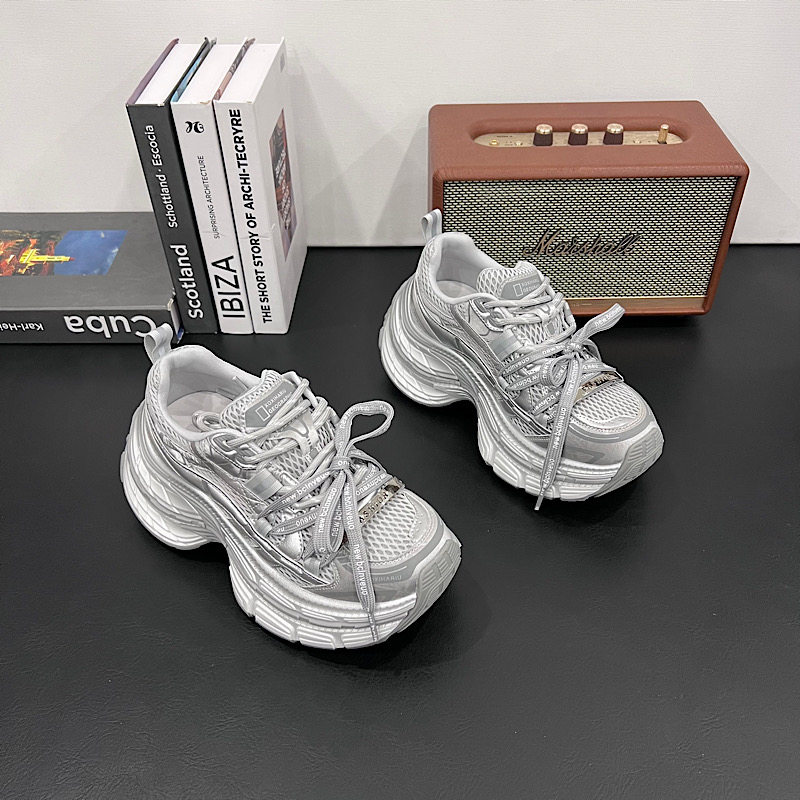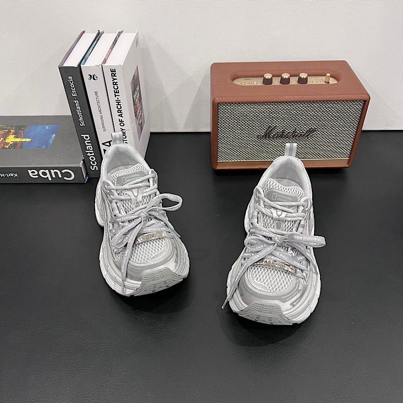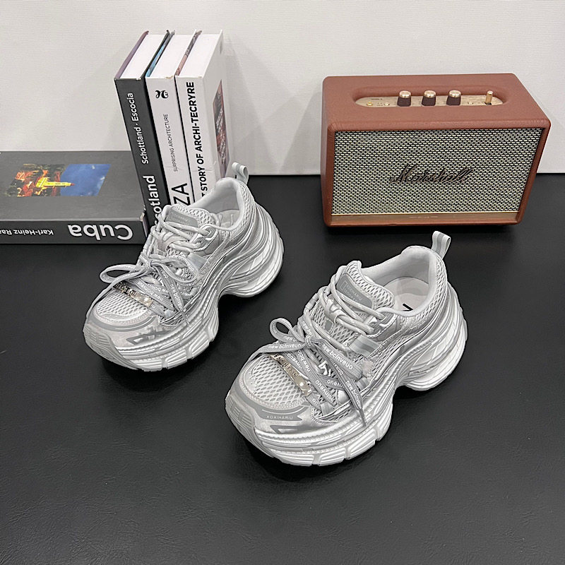 欧洲站单网老爹鞋女2026夏季新款系带配阔腿裤休闲鞋小个子厚底鞋