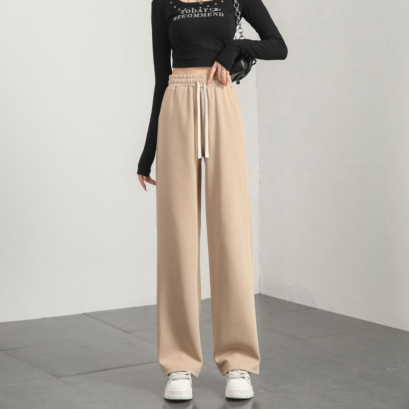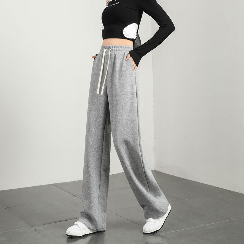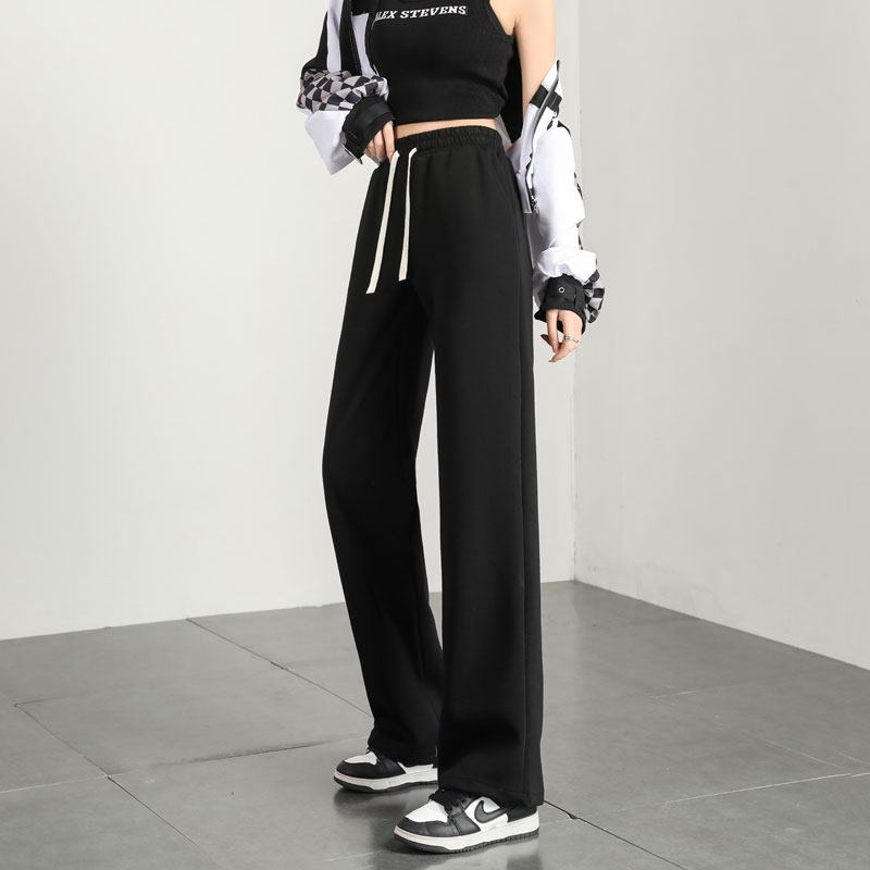 青少年高中初中学生女孩春秋棉质裤子加长版高个子直筒阔腿运动裤