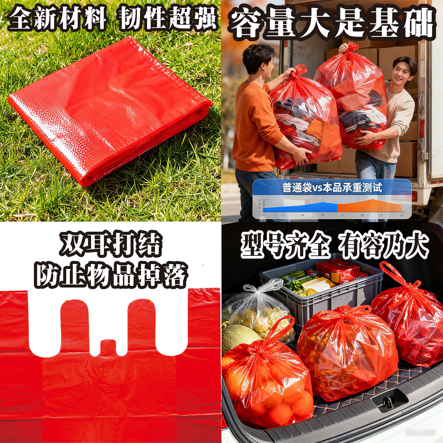 大号背心袋加厚红色塑料袋子收纳袋服装打包袋搬家方便袋手提胶袋