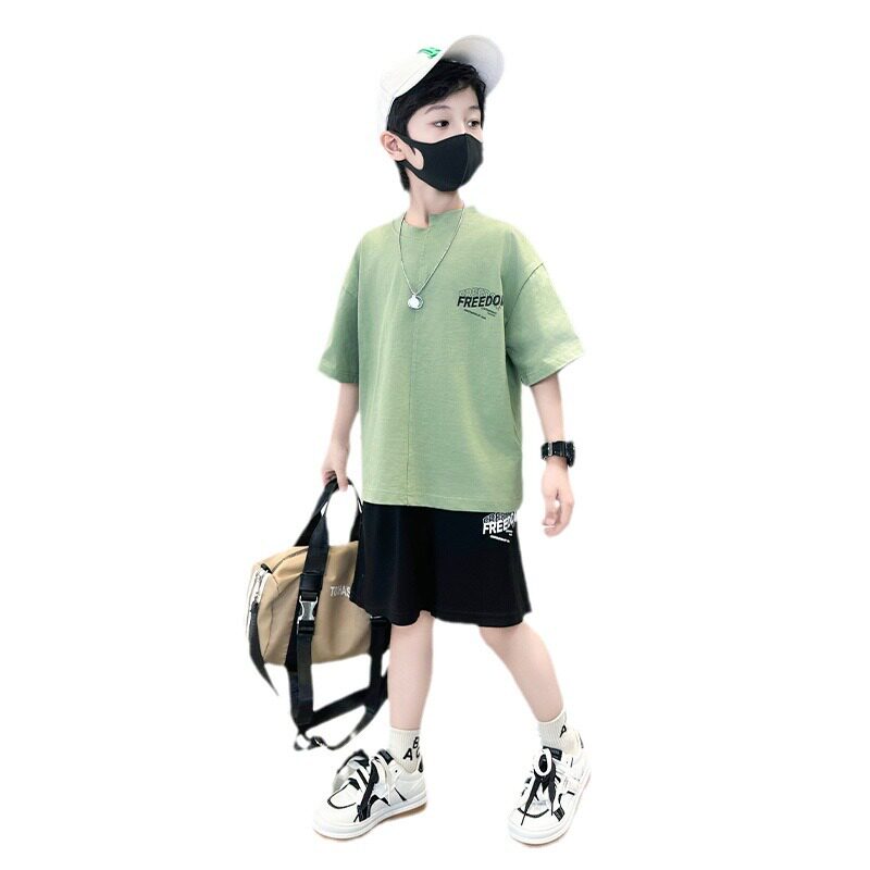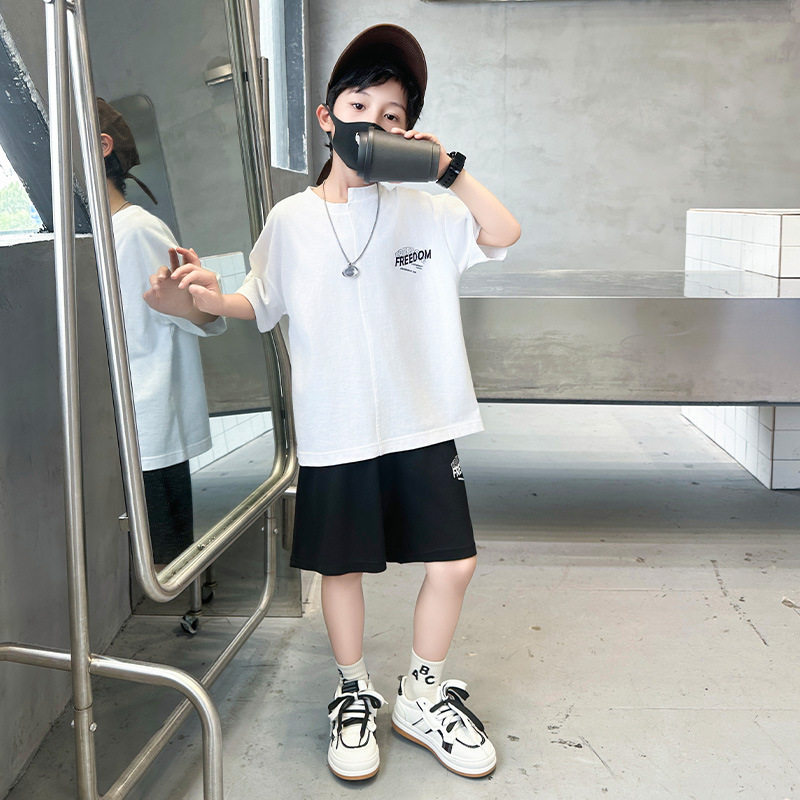 男童夏季套装2026新款夏装中大儿童男孩薄款帅气时髦痞帅短袖潮酷