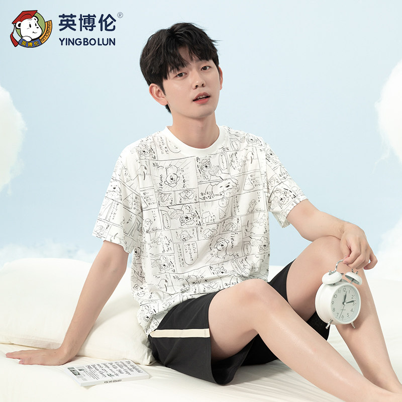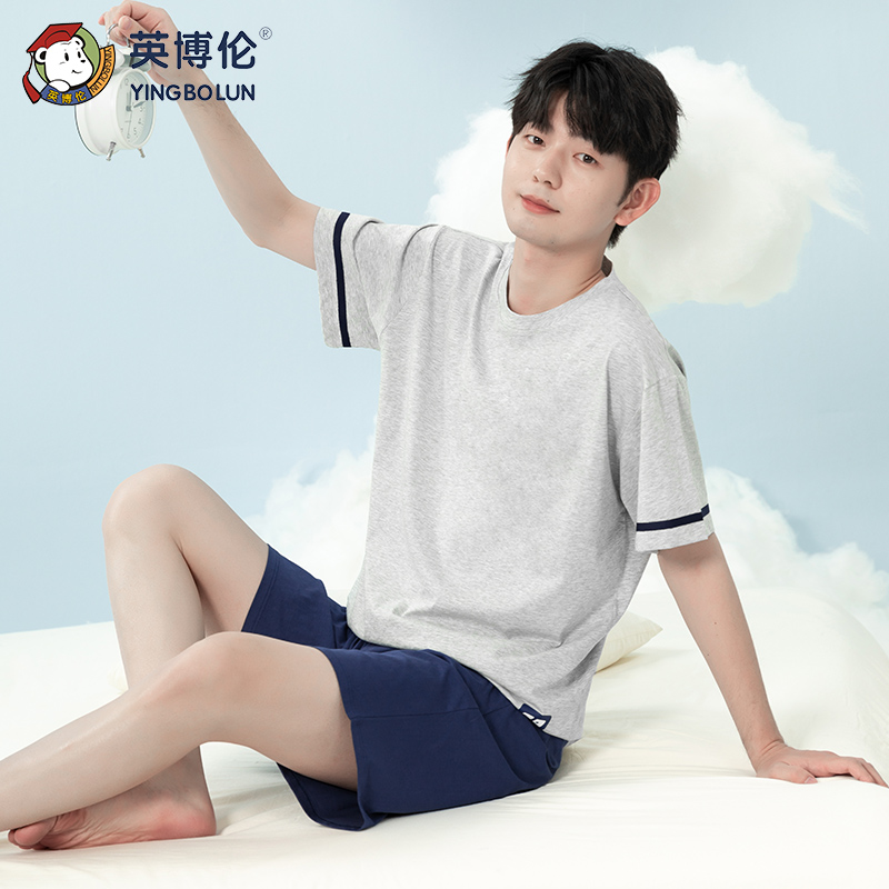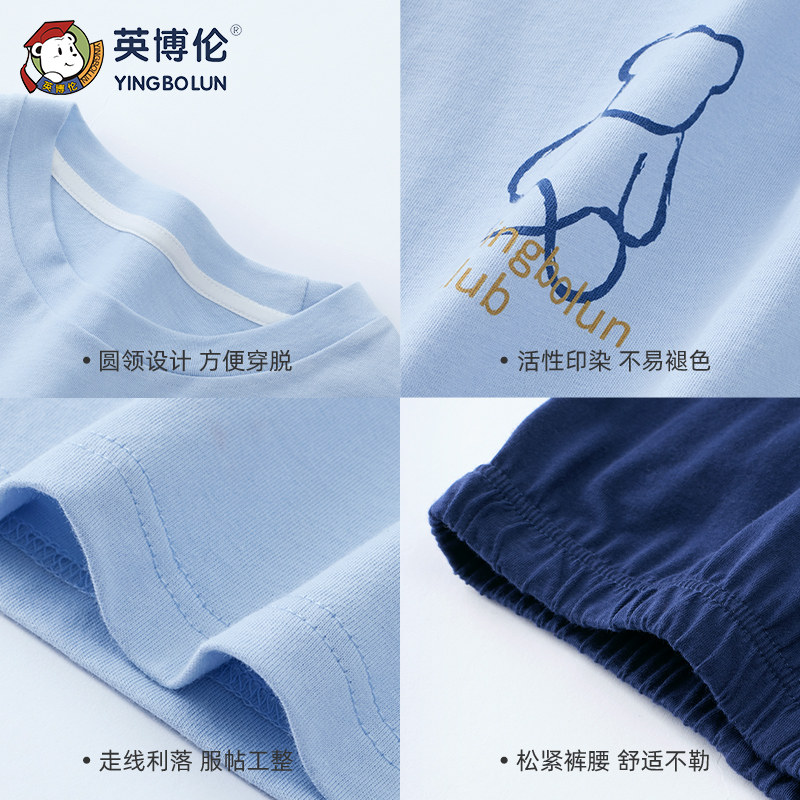 英博伦男童睡衣青少年中大儿童夏季薄款家居服纯棉短袖套装空调服