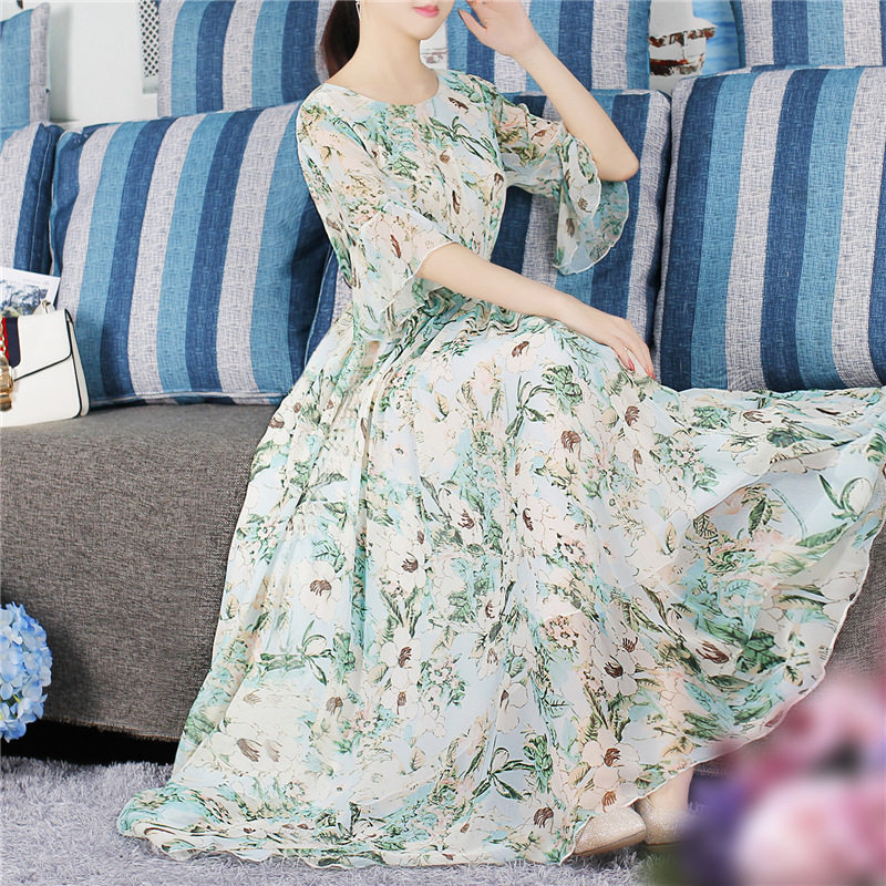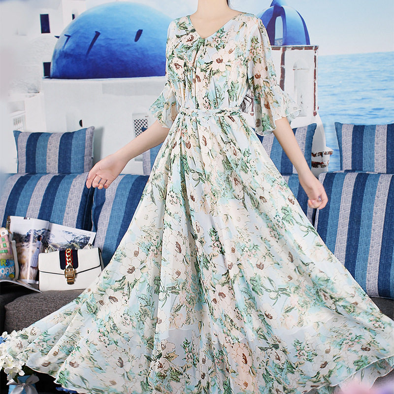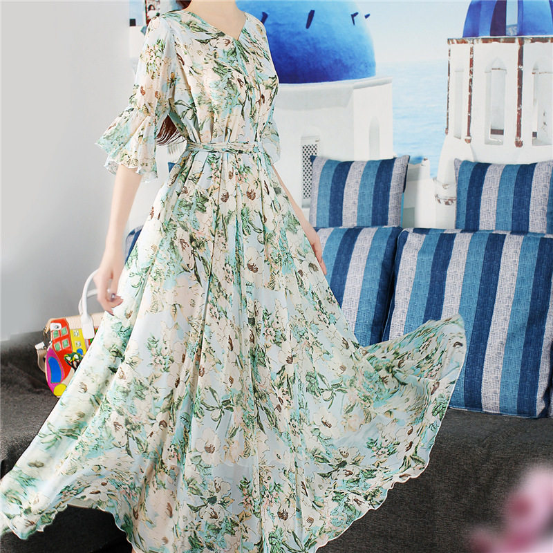 夏季碎花裙大码连衣裙女海边度假裙子薄荷曼波显瘦胖mm宽松长裙
