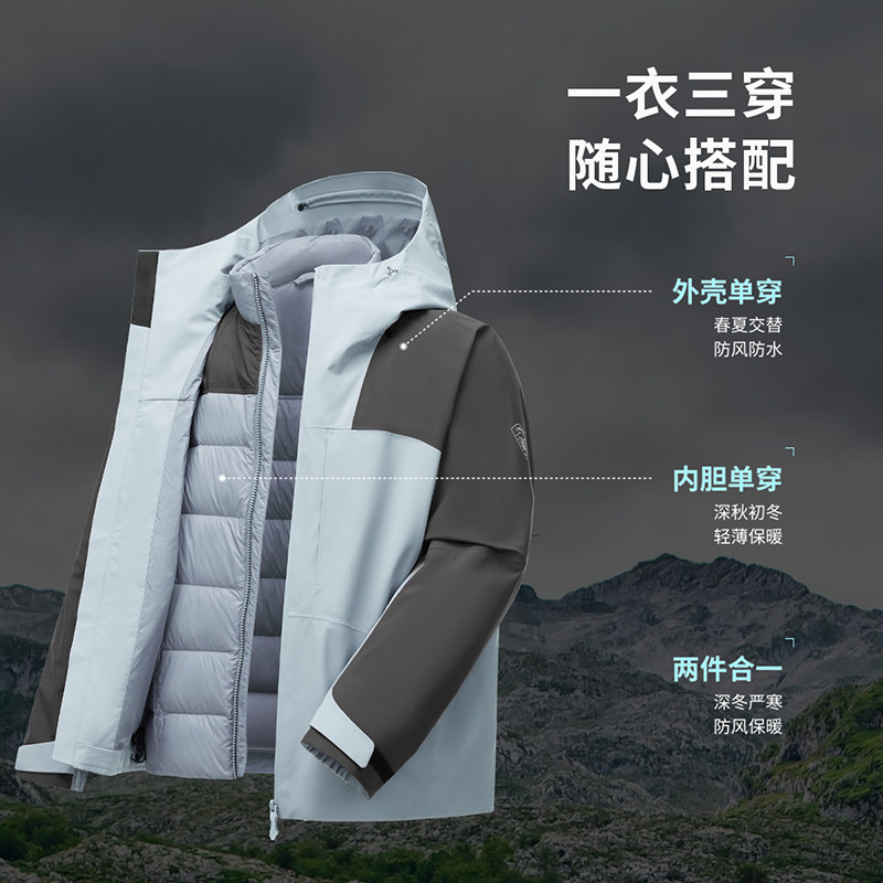 坦博尔户外羽绒服男女同款防水抗寒三合一登山保暖运动外套90%绒