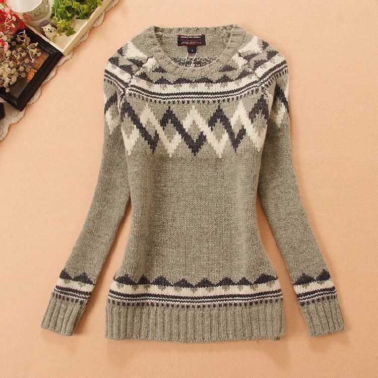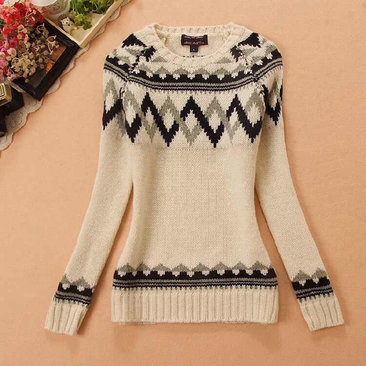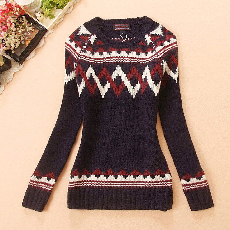 2023秋冬加厚羊毛衫女圆领提花修身打底针织毛衣长袖学院减龄甜美