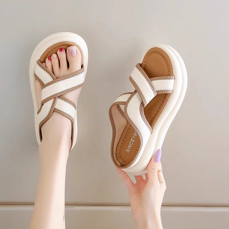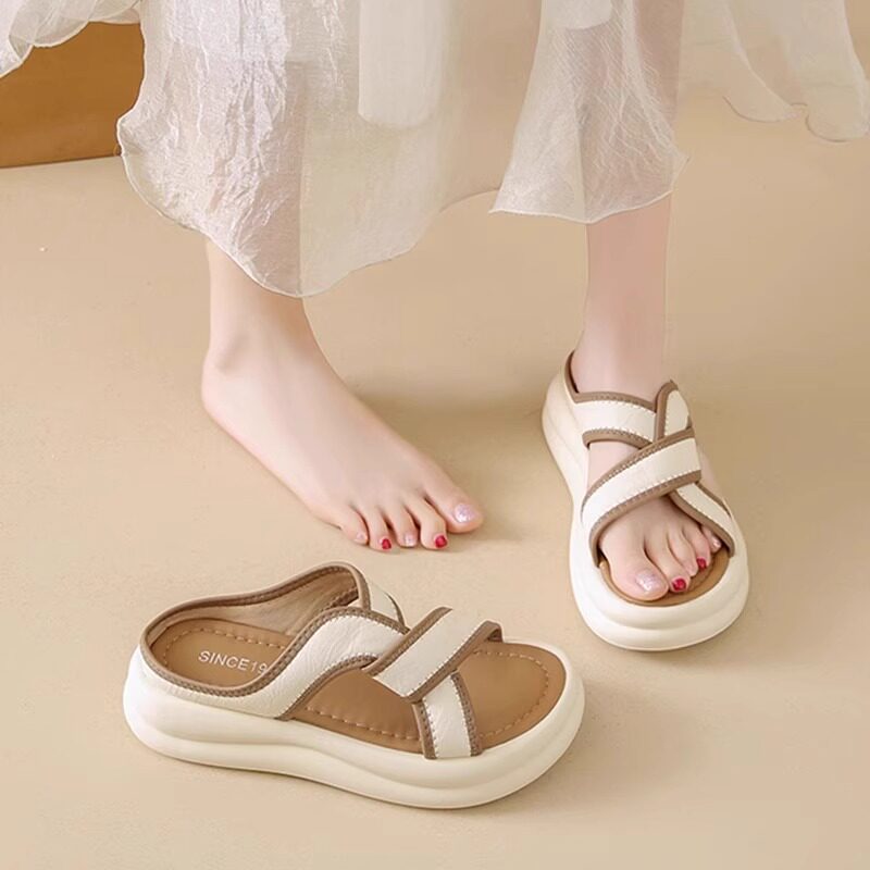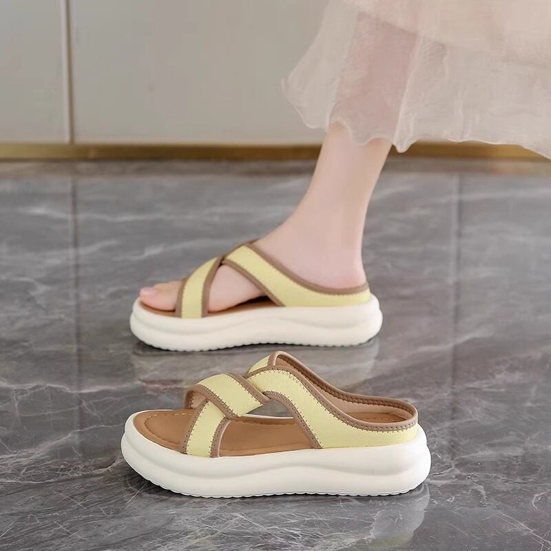品牌正品真皮厚底凉拖鞋女夏外穿2025新夏款孕妇沙滩一字拖女凉鞋