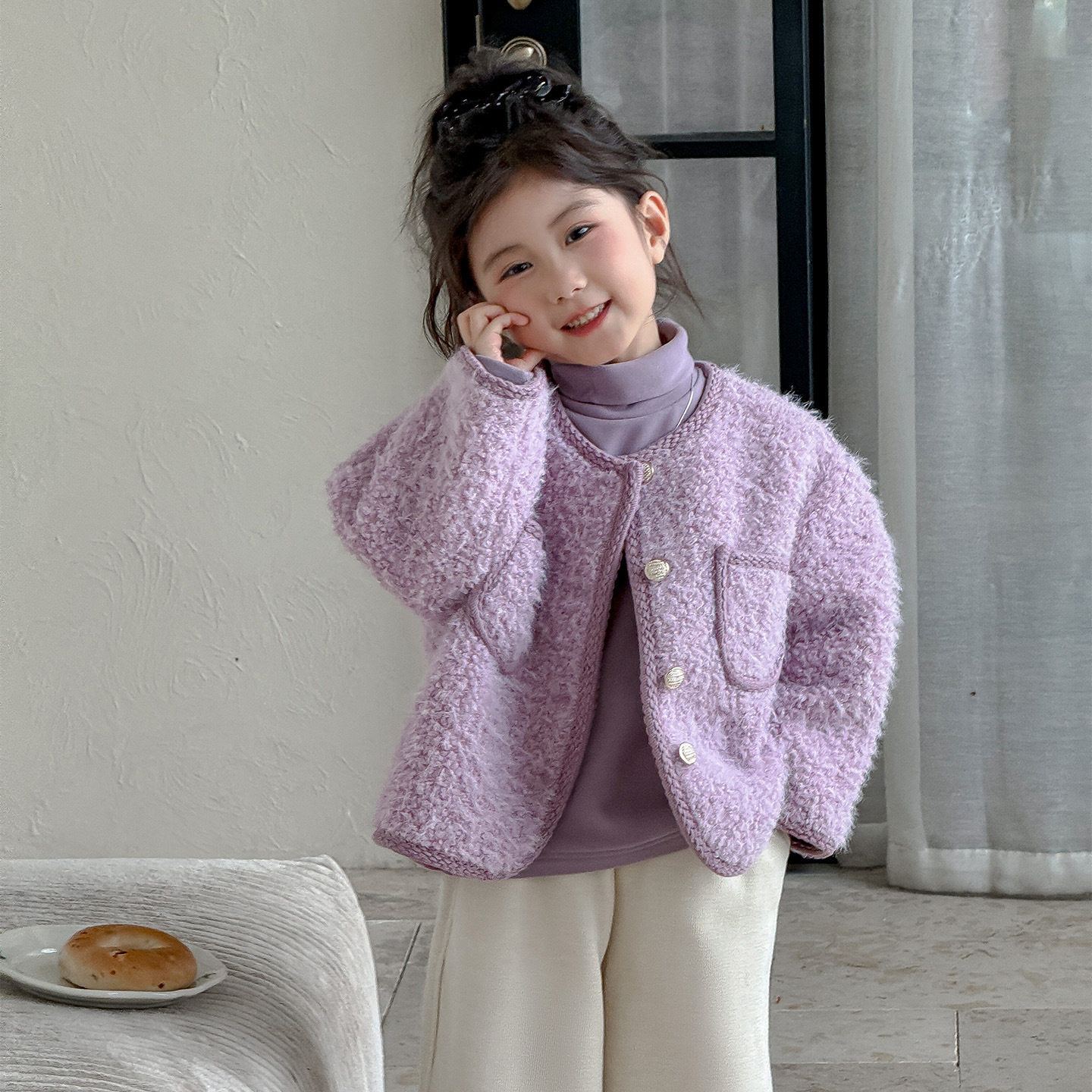 女童加绒外套冬装2026新款加厚儿童冬洋气宝宝时髦上衣小香风套装