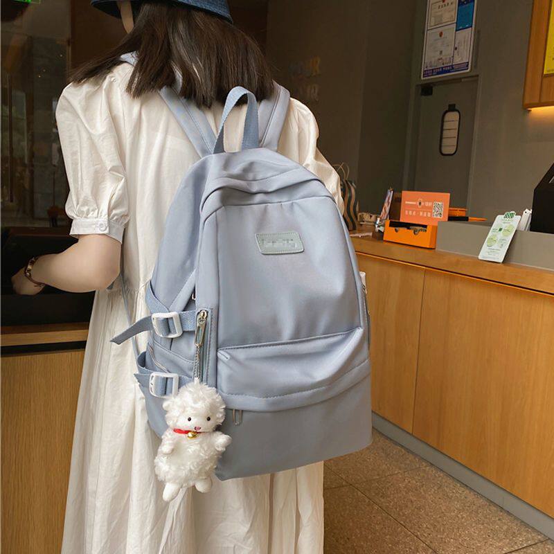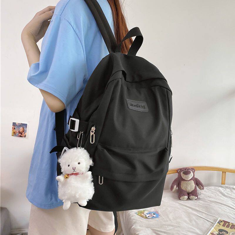 书包女大容量简约百搭电脑背包纯色初中生高中大学生校园双肩包潮