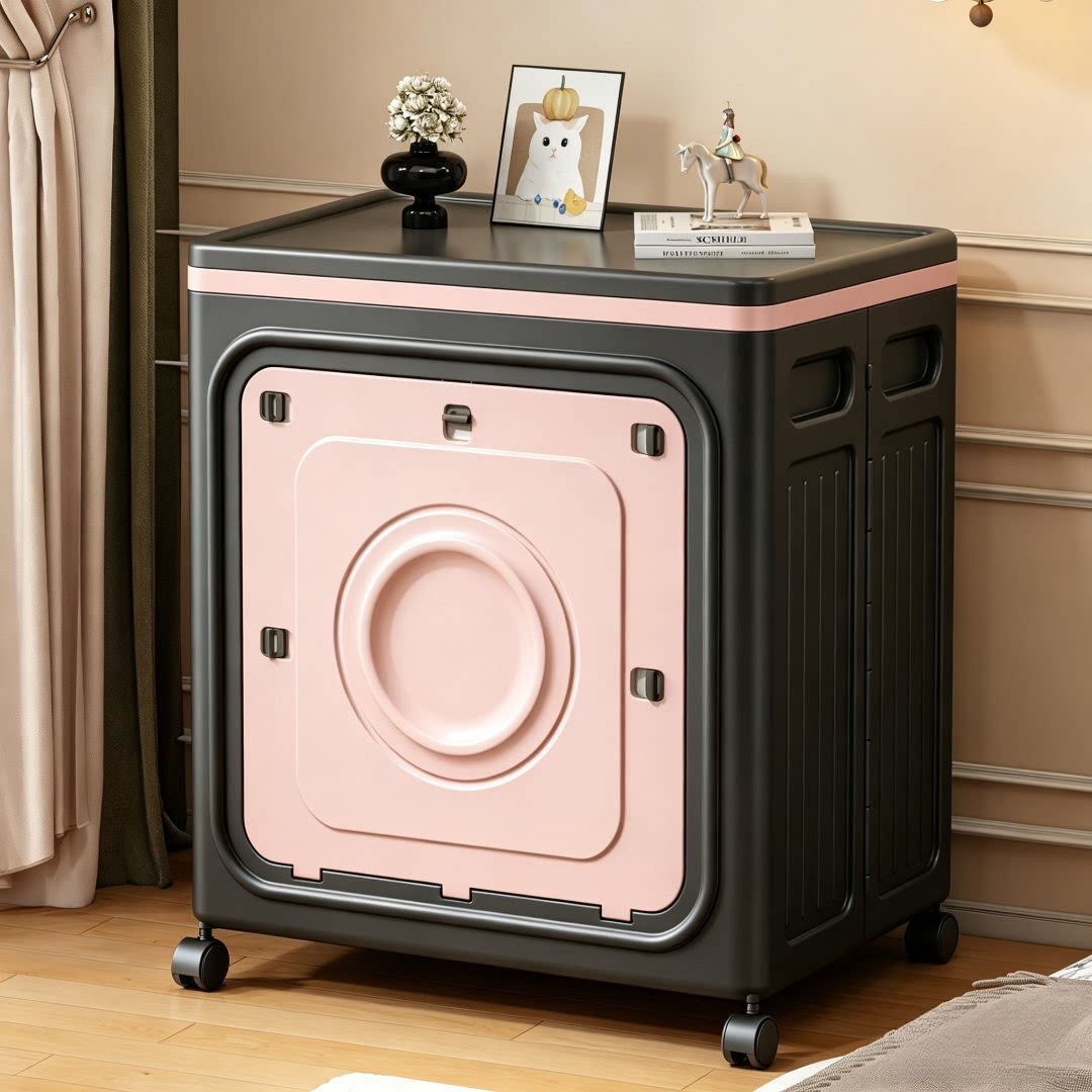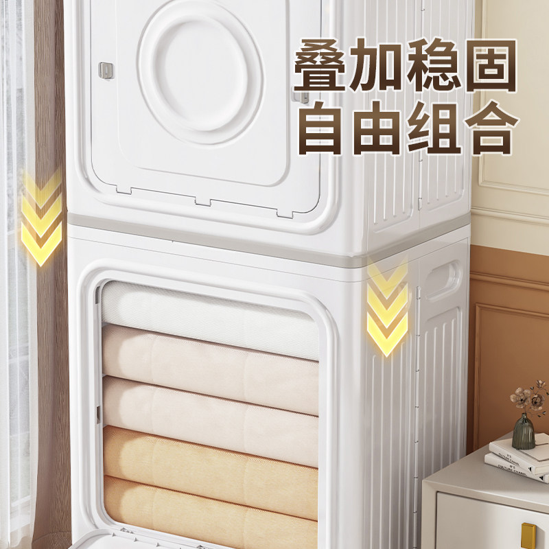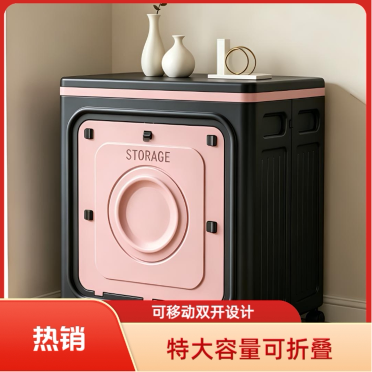 2026黑桃粉双开门收纳箱家用特大容量可折叠翻盖衣物被子玩具整理